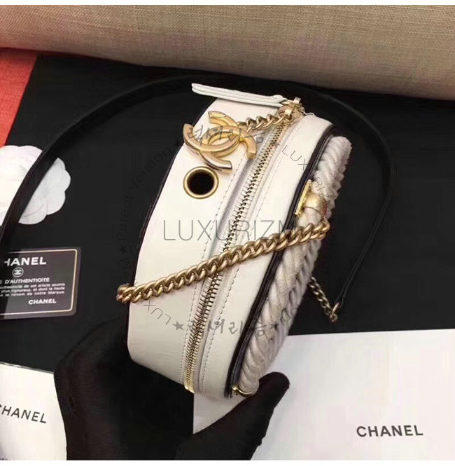 [스페셜오더]CHANEL-AS0075 샤넬 화이트 크럼플드 카프스킨 코튼 골드메탈 스몰 라운드백