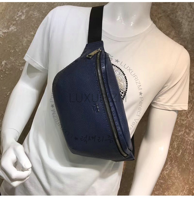 지퍼 잠금식 벨트 백. 길이 조절 가능 벨트. 로마노 가죽 소재.메탈