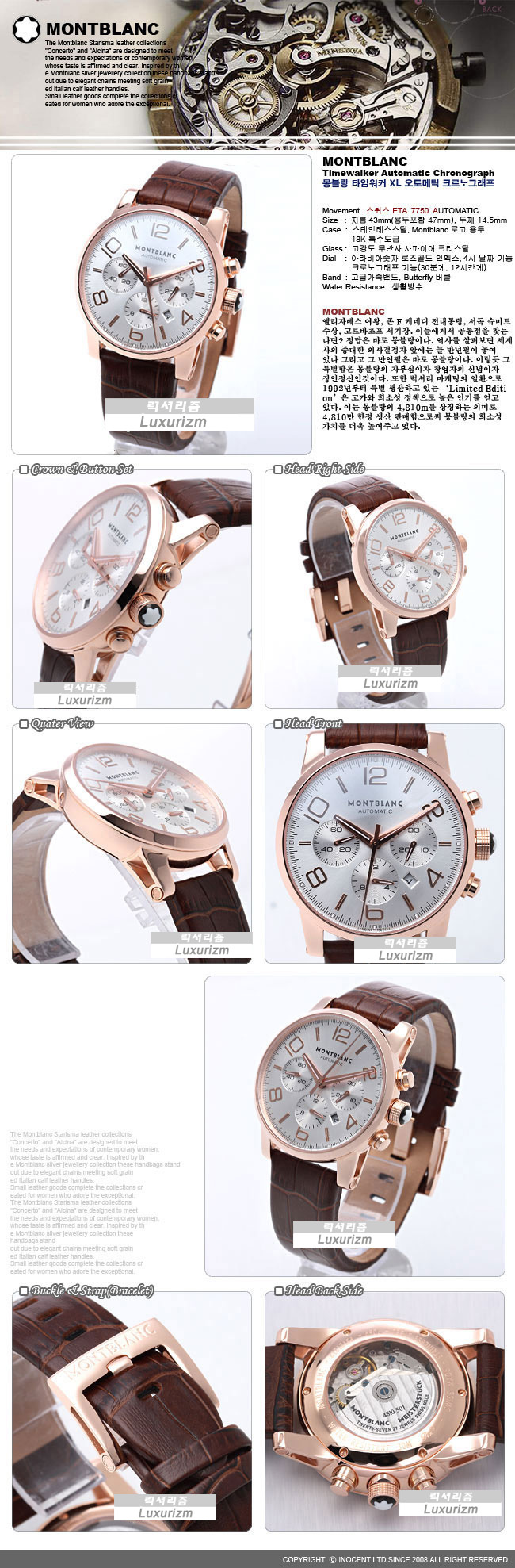 MONTBLANC 타임워커 XL 오토메틱 크르노그래프 SWISS ETA7750 Gold 가죽 브라운