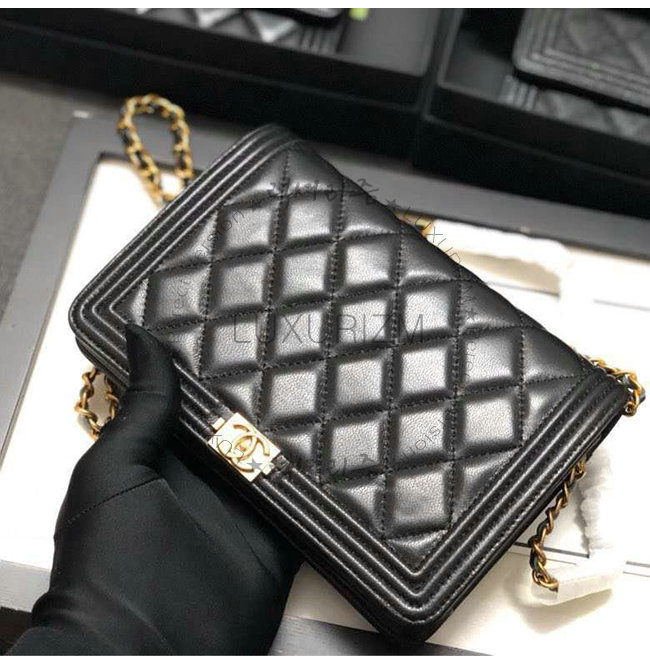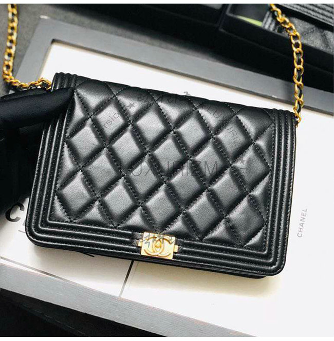 [스페셜오더]CHANEL-A80287 샤넬 블랙 램스킨 골드메탈 보이 샤넬 체인 지갑