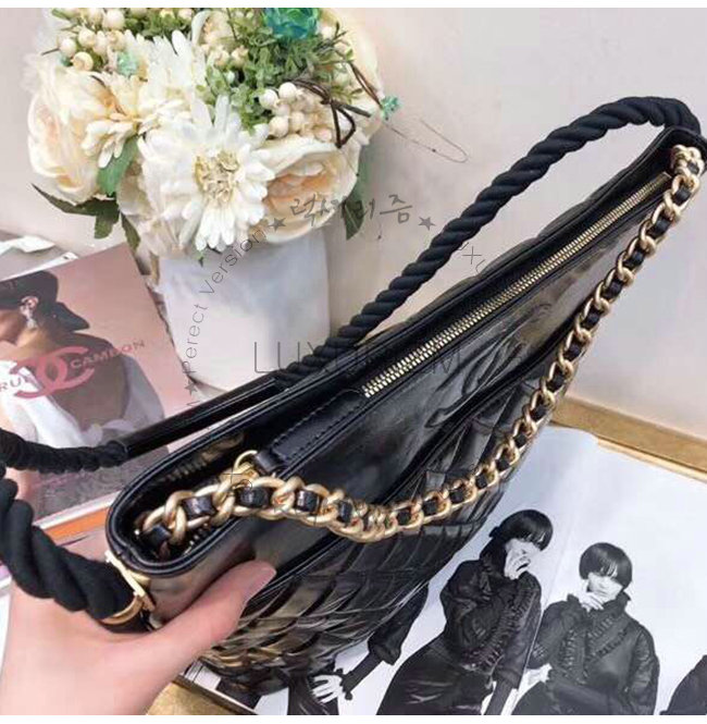 [스페셜오더]CHANEL-AS0076 샤넬 블랙 크럼플드 카프스킨 골드메탈 호보 핸드백