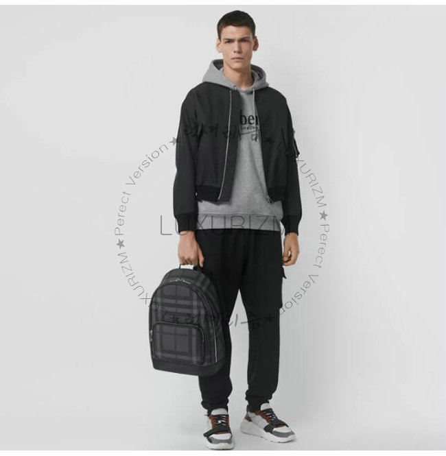 [스페셜오더]BURBERRY-80051611 그레이 네이비 런던 체크 가죽 백팩