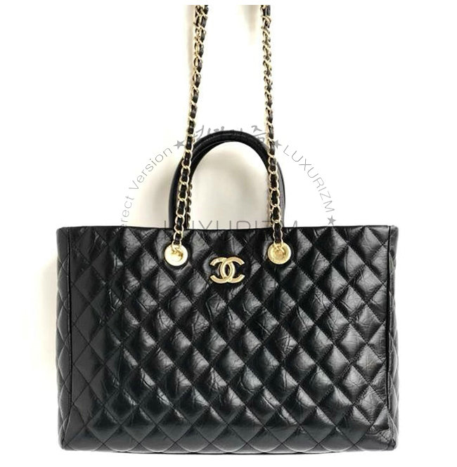 [스페셜오더]CHANEL-A93525 샤넬 블랙 빈티지 카프스킨 골드메탈 라지 토트백