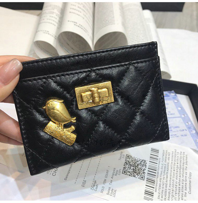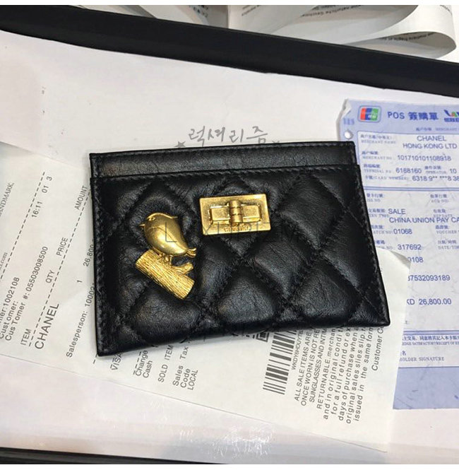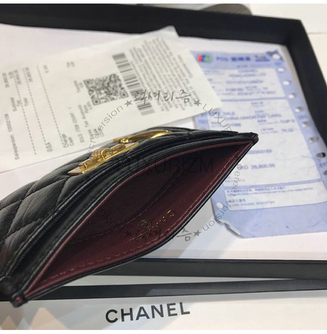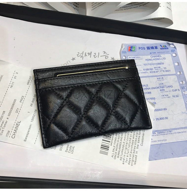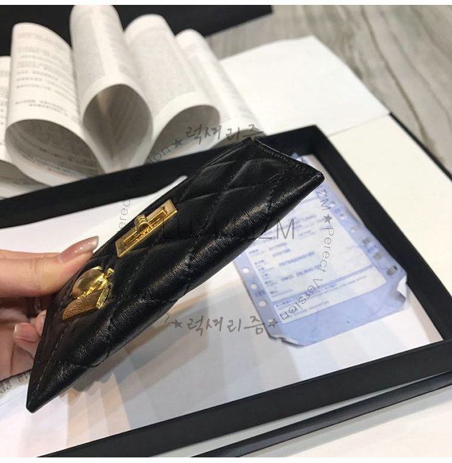 [스페셜오더]CHANEL-A80611 샤넬 블랙 빈티지 카프스킨 참 장식 골드메탈 2.55 카드 홀더