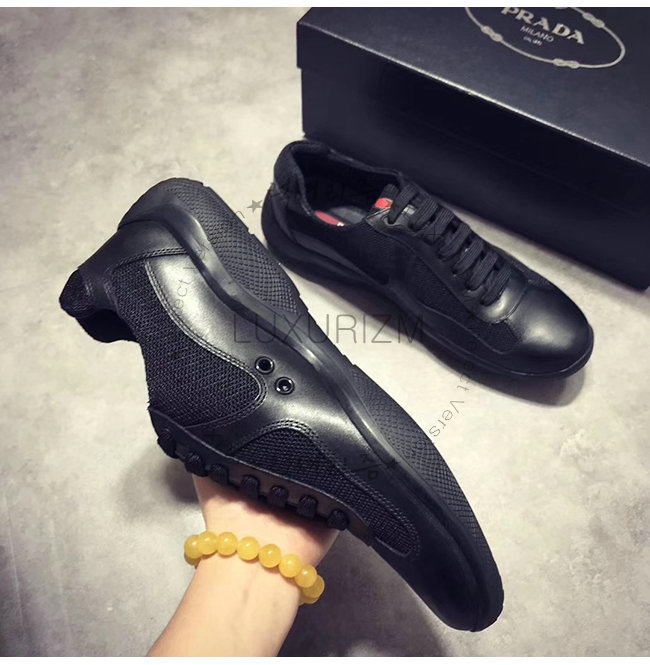 PRADA-4E3337 프라다 블랙 송아지 가죽 기능성 패브릭 스니커즈