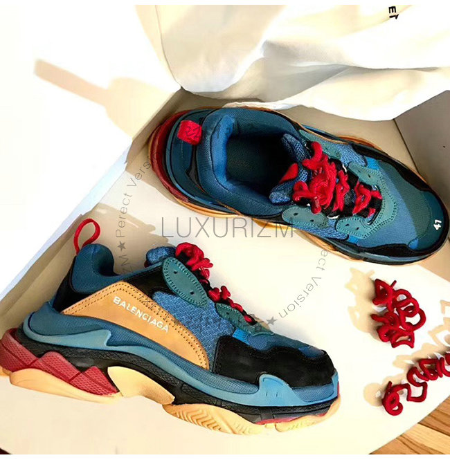 BALENCIAGA-541641 발렌시아가 블루 트리플 S 트레이너 스니커즈(남여공용)
