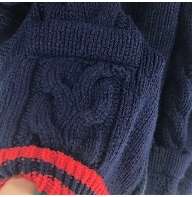 네이비 케이블 니트 울 그린/레드 트리밍