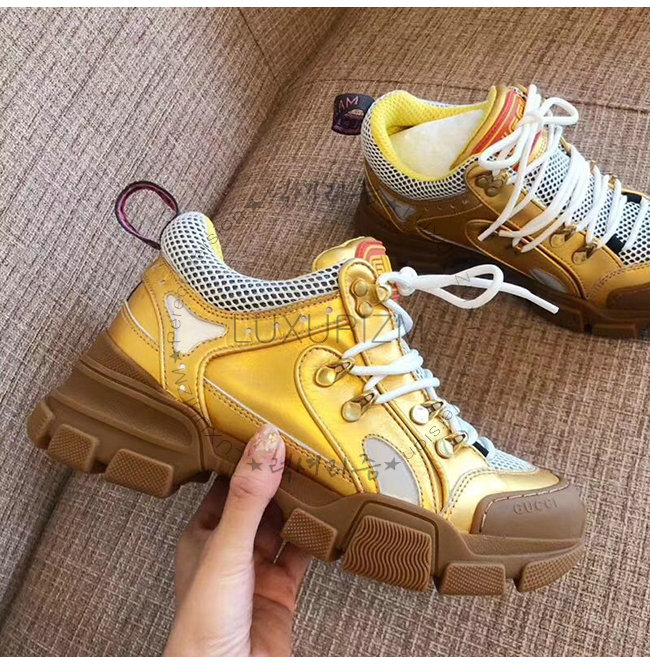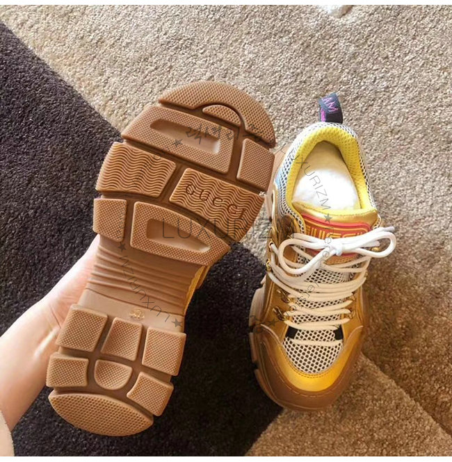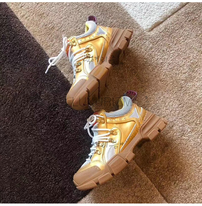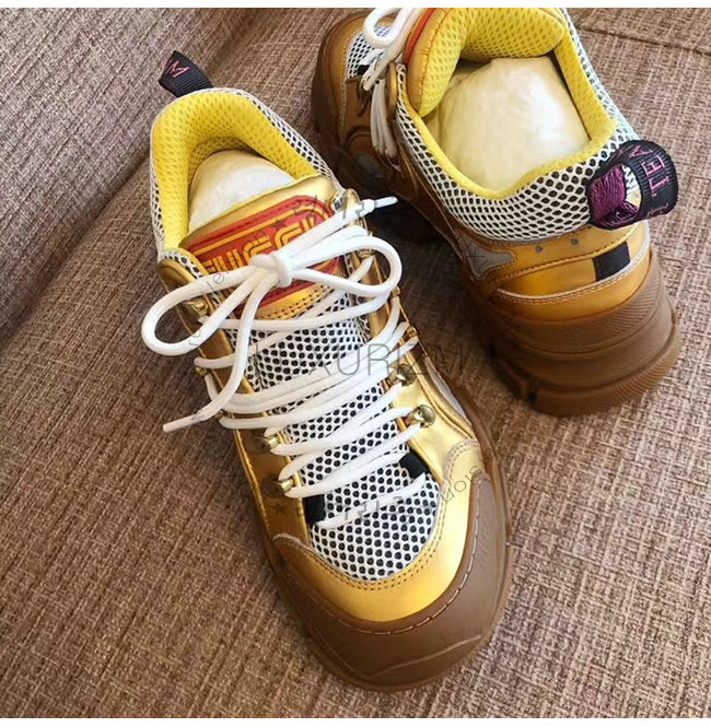 GUCCI-552532 8077 구찌 플래시트렉 골드 메탈릭 가죽 스니커즈(남여공용)