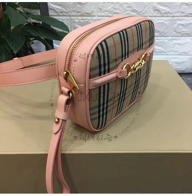 [스페셜오더]BURBERRY-80073521 버버리 핑크 가죽 트리밍 1983 체크 링크 범 백