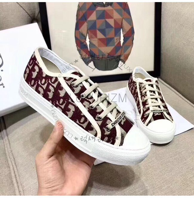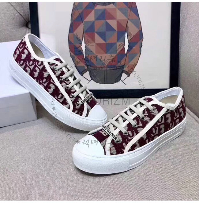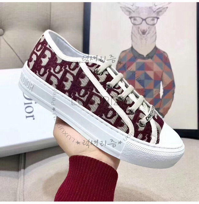 DIOR-KCK211 디올 버건디 OBLIQUE 자수 장식 캔버스 WALK N DIOR 스니커즈