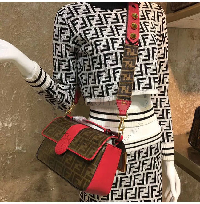 [스페셜오더]FENDI-8BT297 펜디 더블 F 페브릭 레드 송아지 가죽 더블 사이드 핸드백