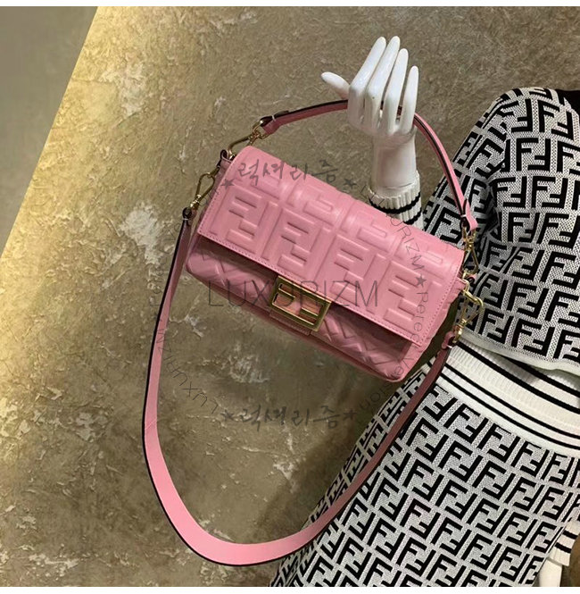 [스페셜오더]FENDI-8BR600 펜디 핑크 FF 모티프 양가죽 미디엄 바게트백