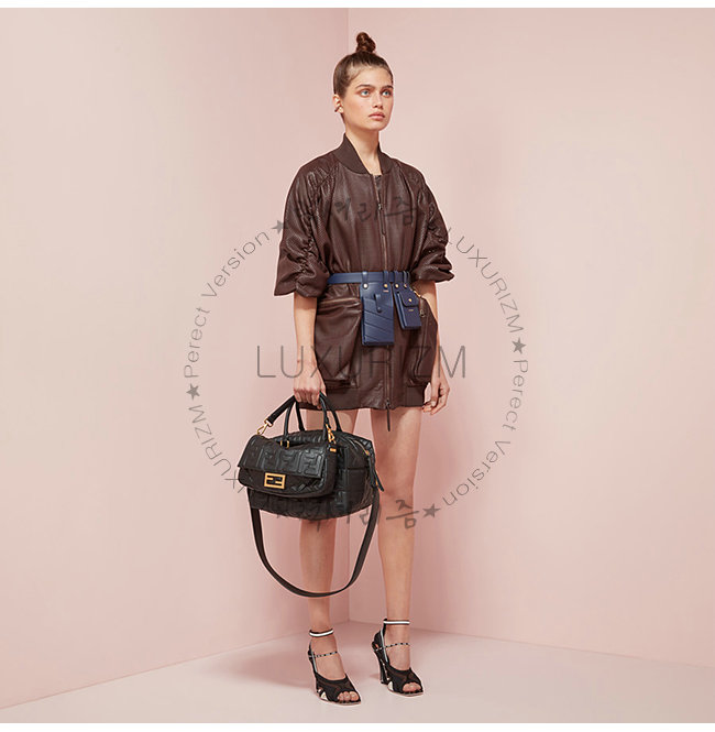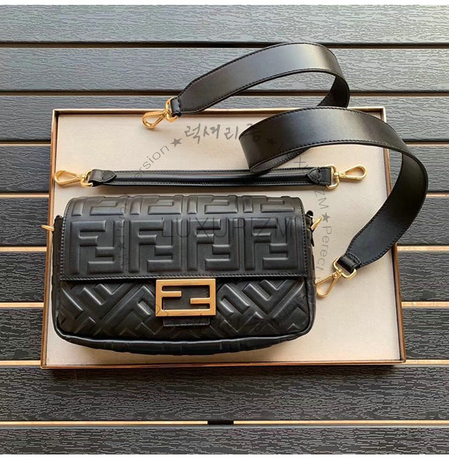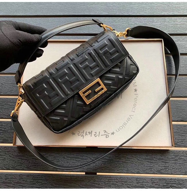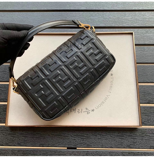 [스페셜오더]FENDI-8BR600 펜디 블랙 FF 모티프 양가죽 미디엄 바게트백