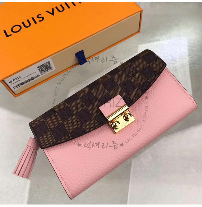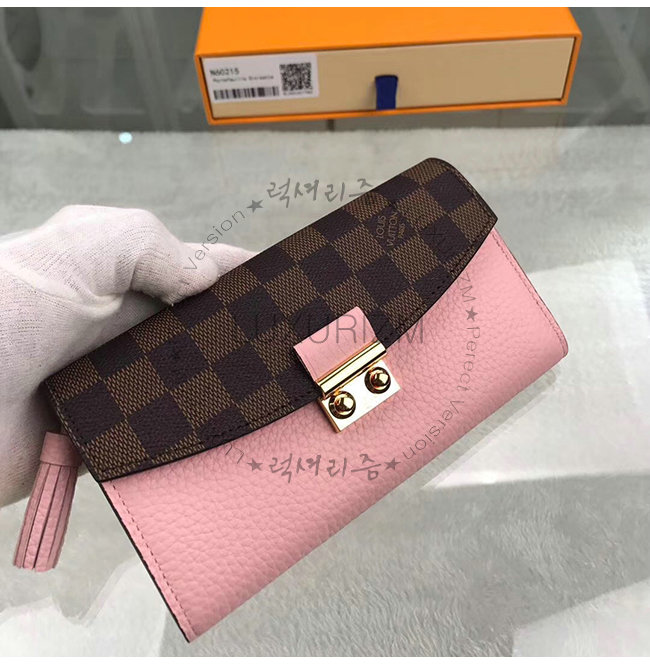 [스페셜오더]LOUIS VUITTON-N60215 루이비통 핑크 송아지 가죽 다미에 에벤 크로셋 월릿