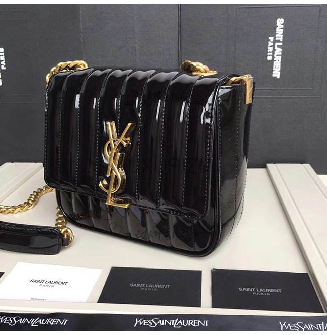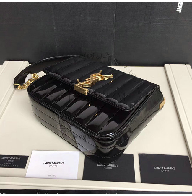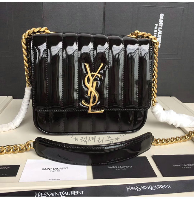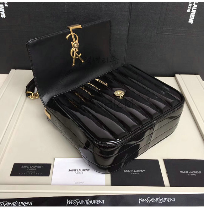 [스페셜오더]SAINT LAURENT-554125 생 로랑 블랙 퀼티드 페이턴트 송아지 가죽 비키 미니 체인백