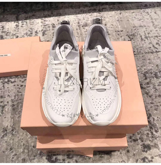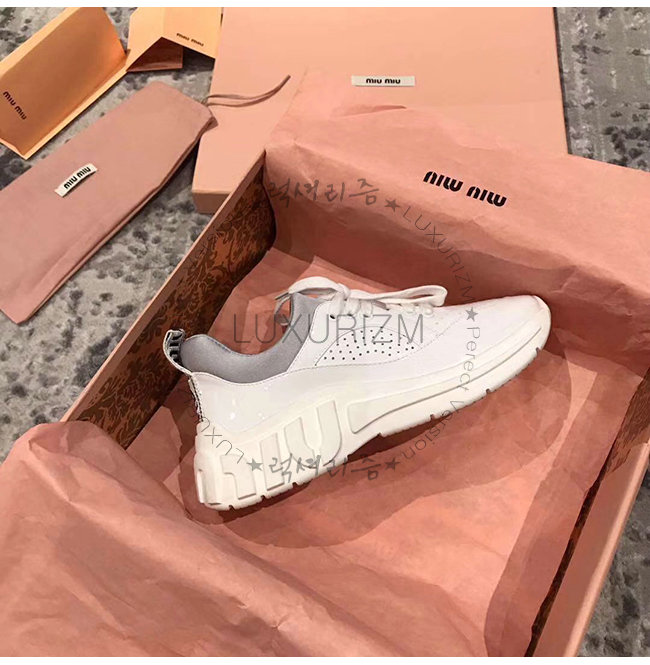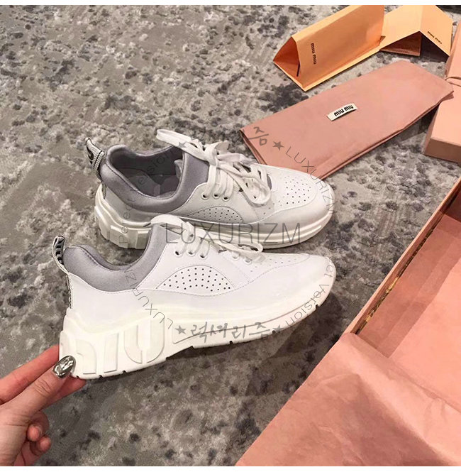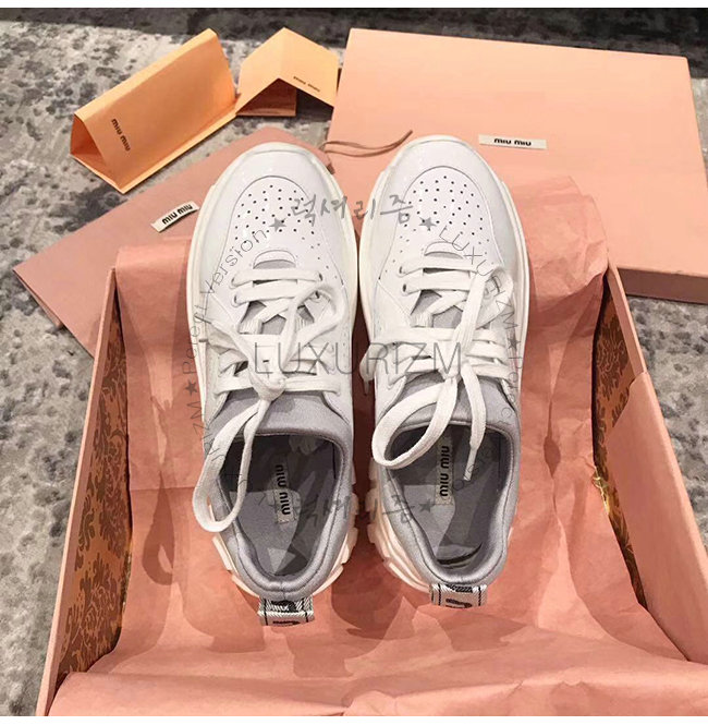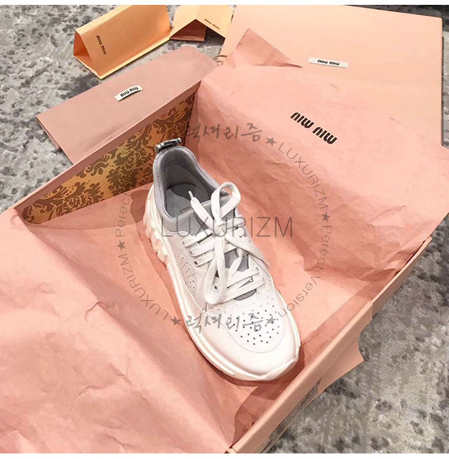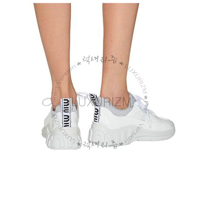MIUMIU-5E329C 미우미우 화이트 송아지 가죽 MIU RUN 스니커즈