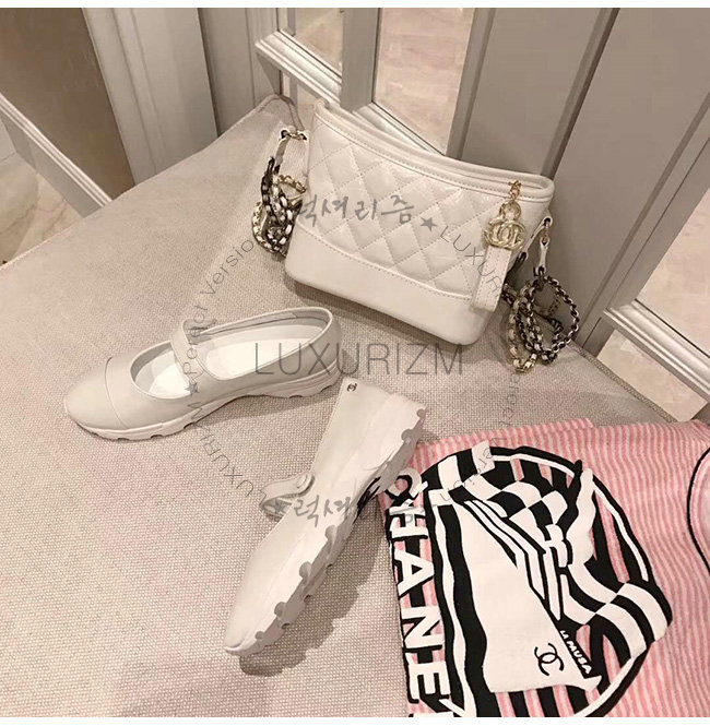 CHANEL-G34464 샤넬 화이트 카프스킨 메리제인