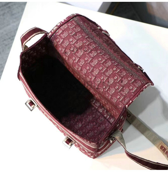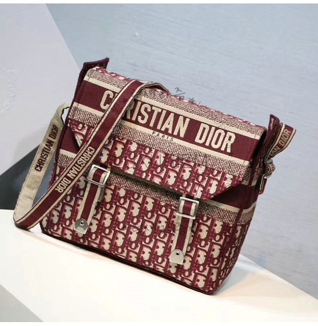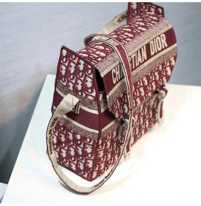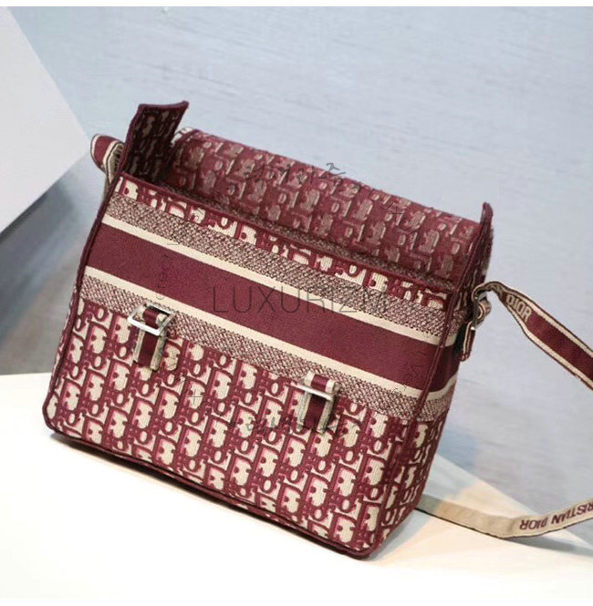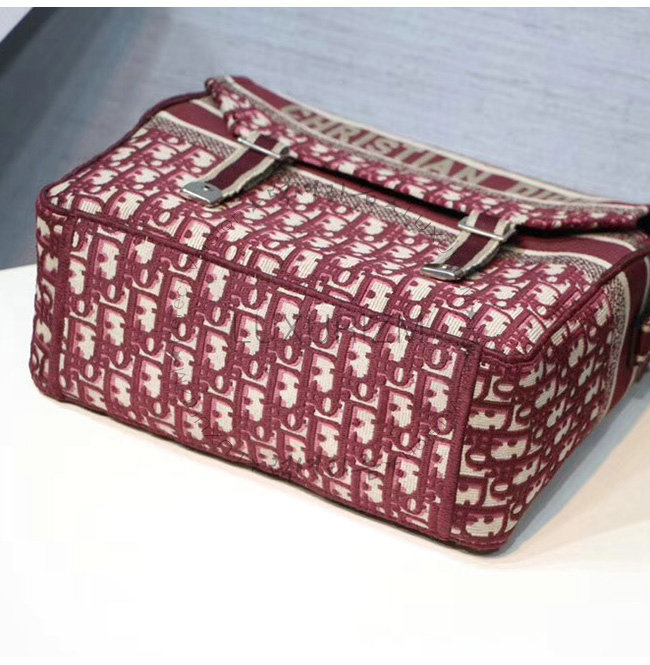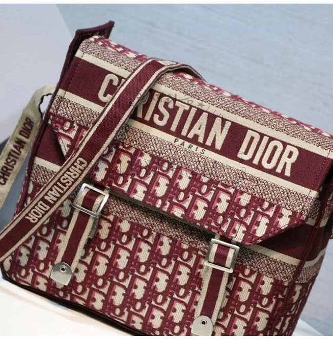 버건디 Dior Oblique 자수 장식 패브릭 메신저 백.