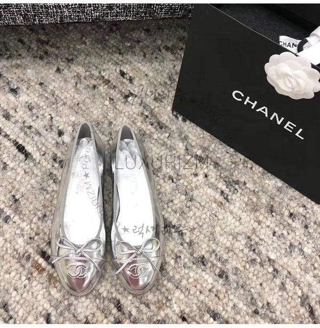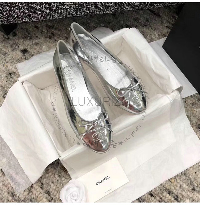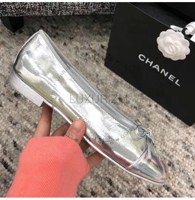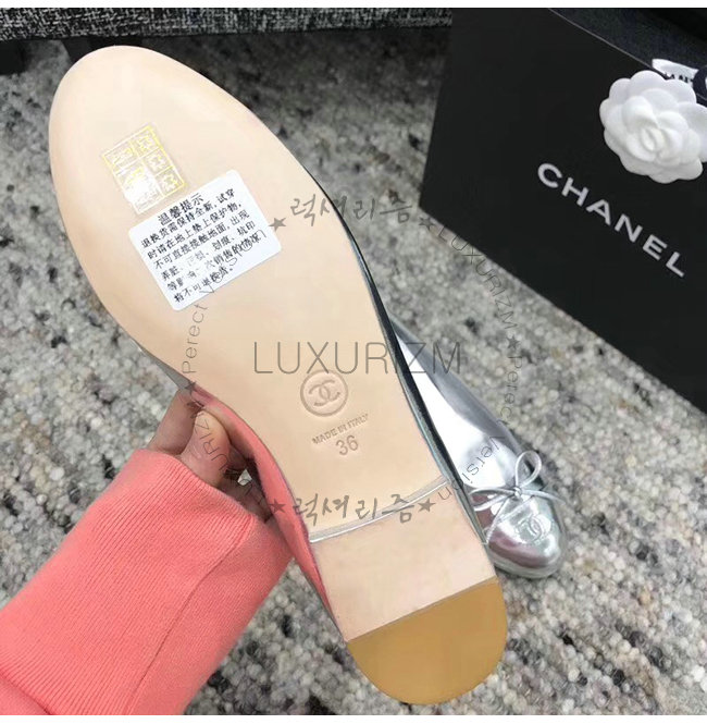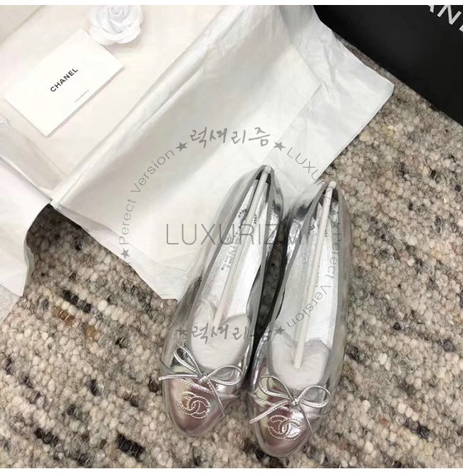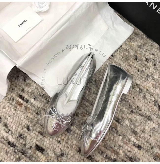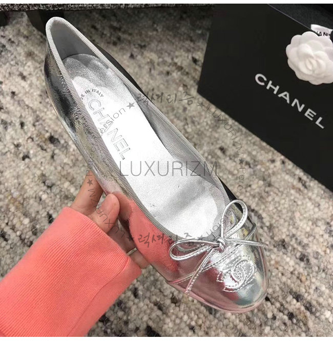 CHANEL-G02819 샤넬 실버 메탈릭 고트스킨 플랫 슈즈