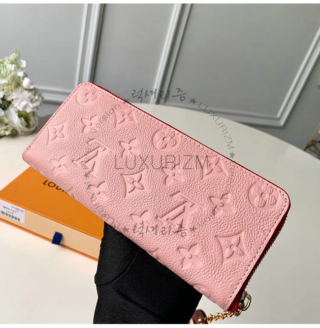 [스페셜오더]LOUIS VUITTON-M64161 루이비통 핑크 모노그램 앙프렝뜨 플라워 참 장식 클레망스 월릿