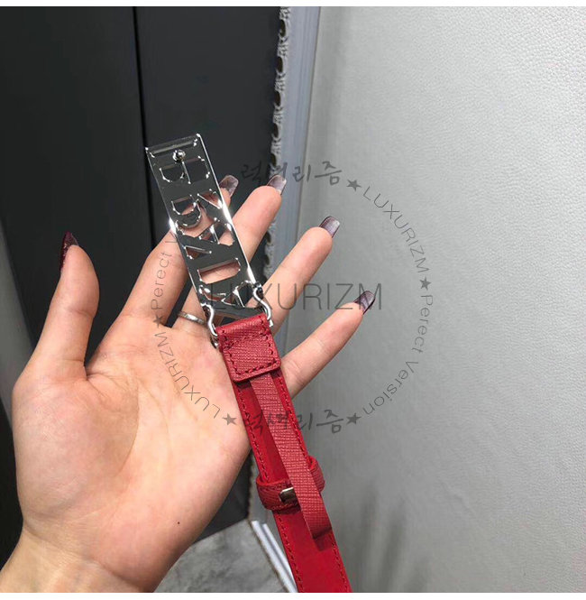 PRADA-1CC267 프라다 레드 사피아노 가죽 은장 벨트 25MM