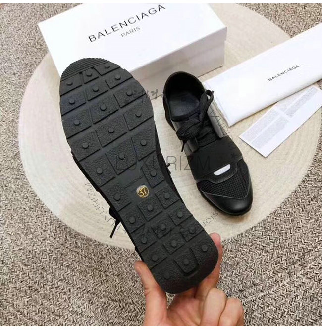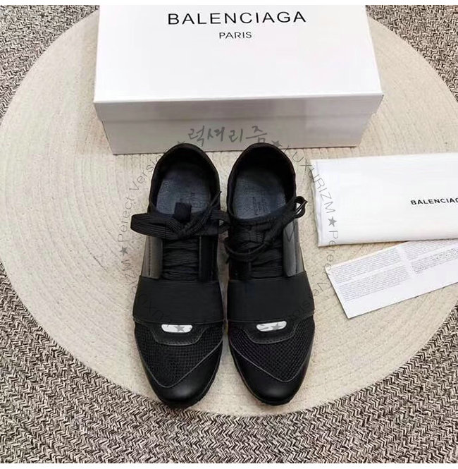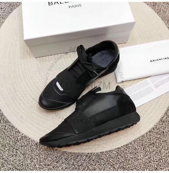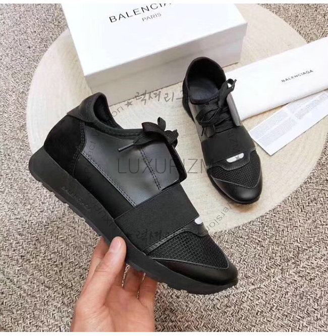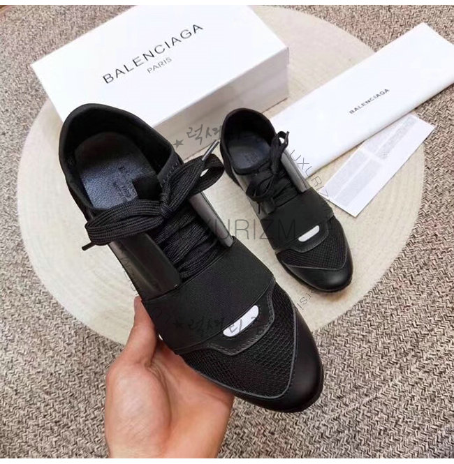 BALENCIAGA-570249 발렌시아가 블랙 송아지 가죽 레이스 러너 스니커즈