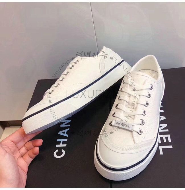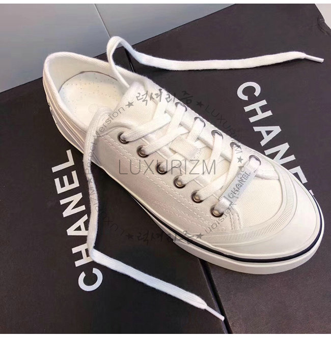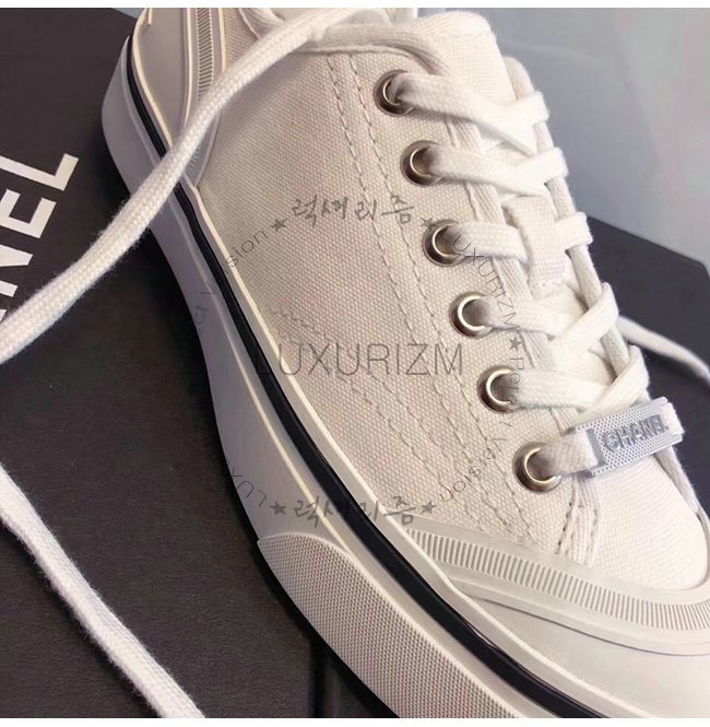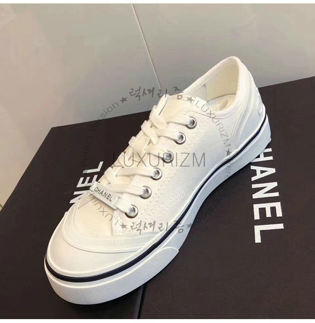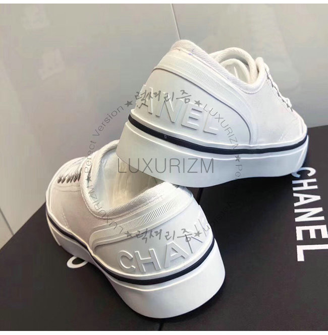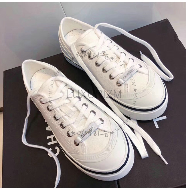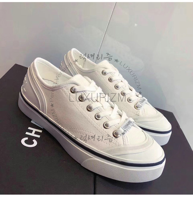 CHANEL-G34760 샤넬 화이트 페브릭 스니커즈