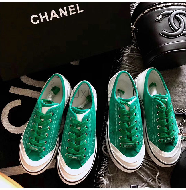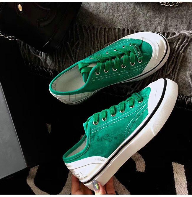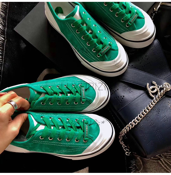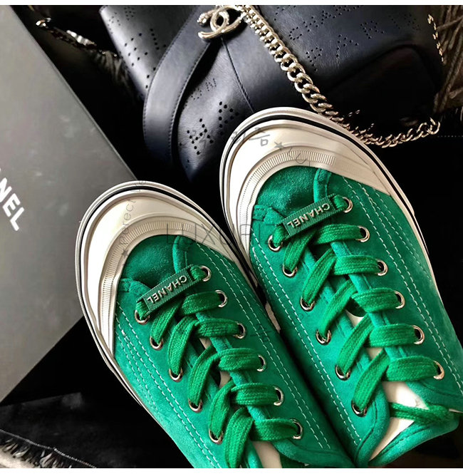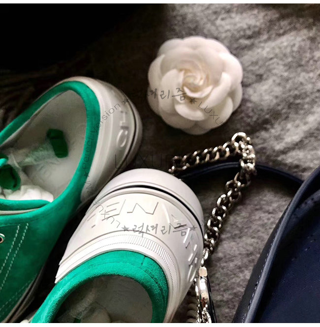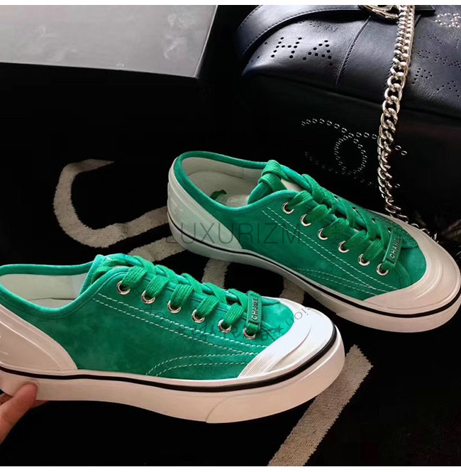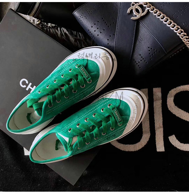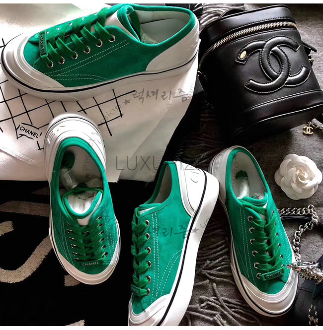 CHANEL-G34760 샤넬 그린 스웨이드 카프스킨 스니커즈