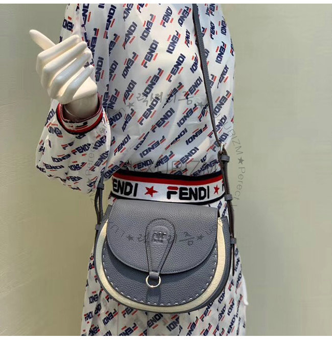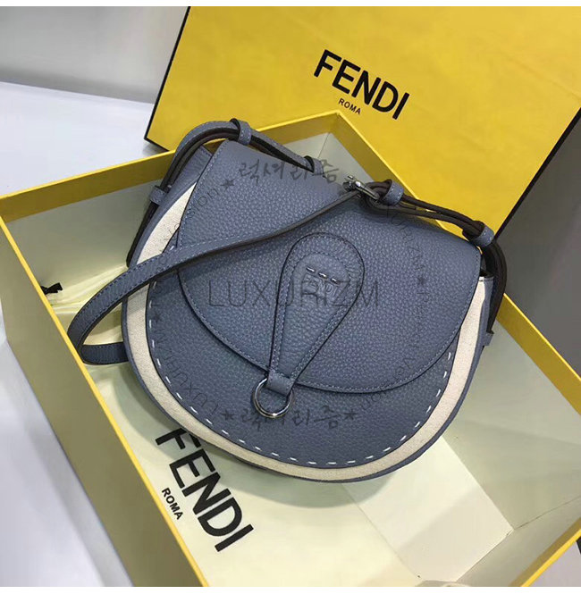 [스페셜오더]FENDI-8BT304 펜디 라이트 블루 로만 가죽 라운드 플랩 새들백