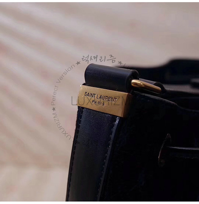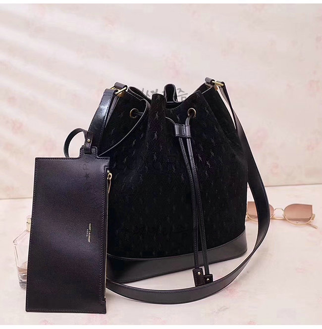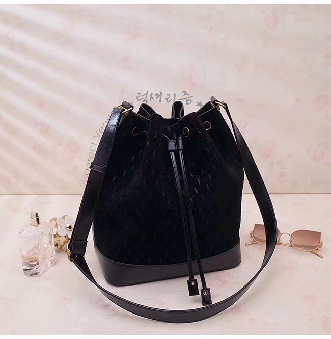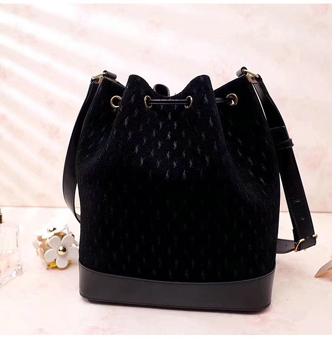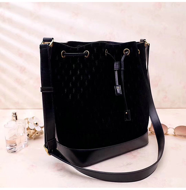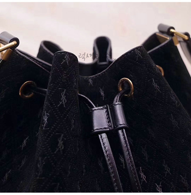 [스페셜오더]SAINT LAURENT-568606 생 로랑 블랙 스웨이드 송아지 가죽 모노그램 버킷백