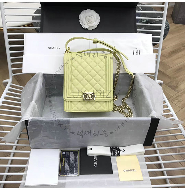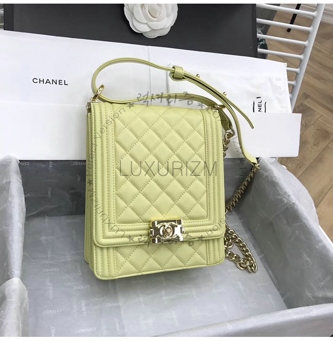 [스페셜오더]CHANEL-AS0130 샤넬 라이트 그린 카프스킨 골드메탈 보이 샤넬 플랩백