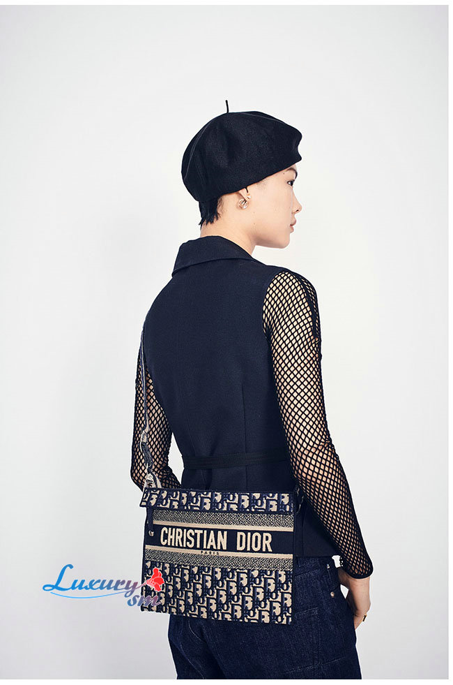 DIOR-M1292 디올 네이비 자수 장식 패브릭 클러치백
