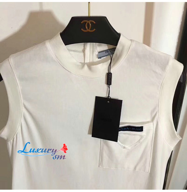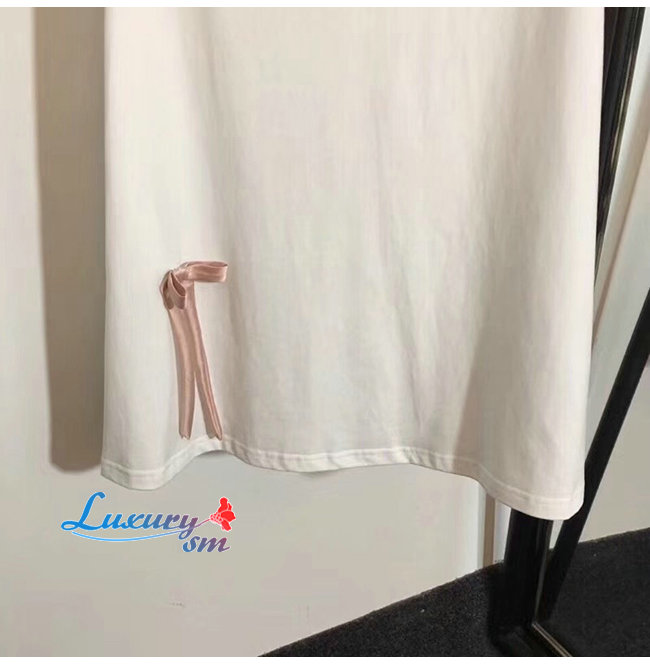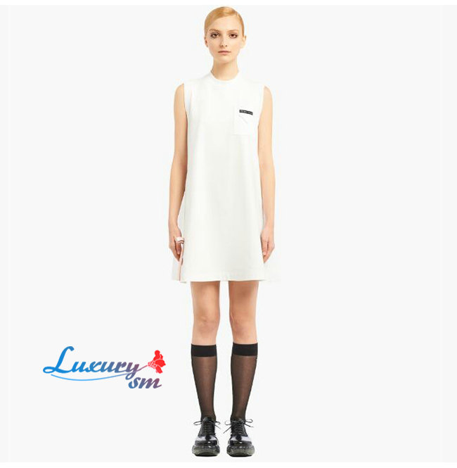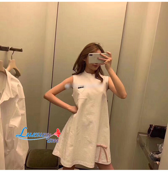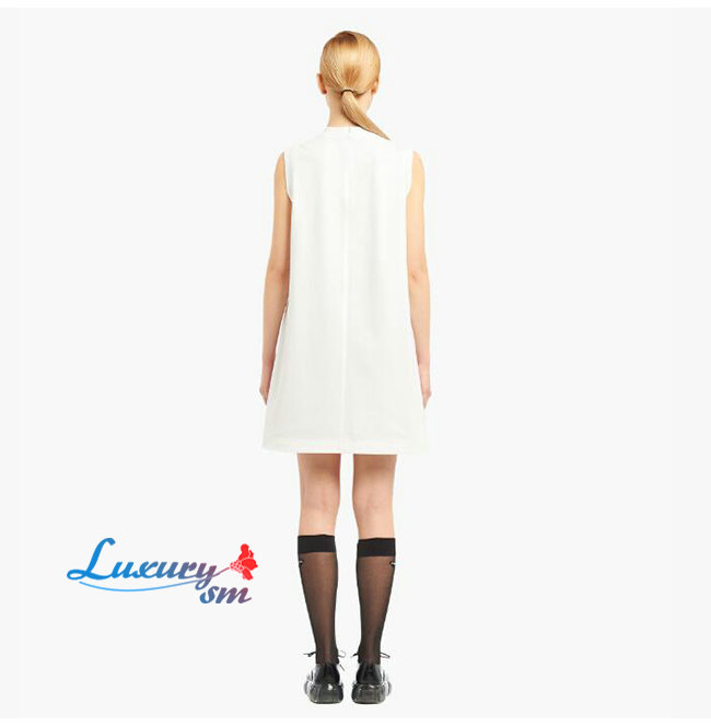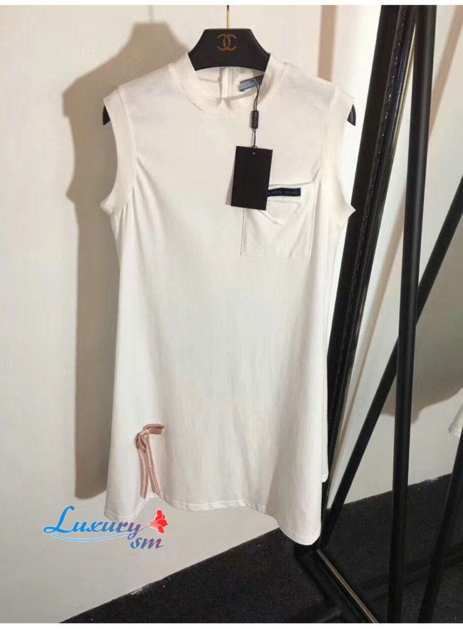 PRADA-33535 프라다 화이트 코튼 리본 장식 저지 드레스
