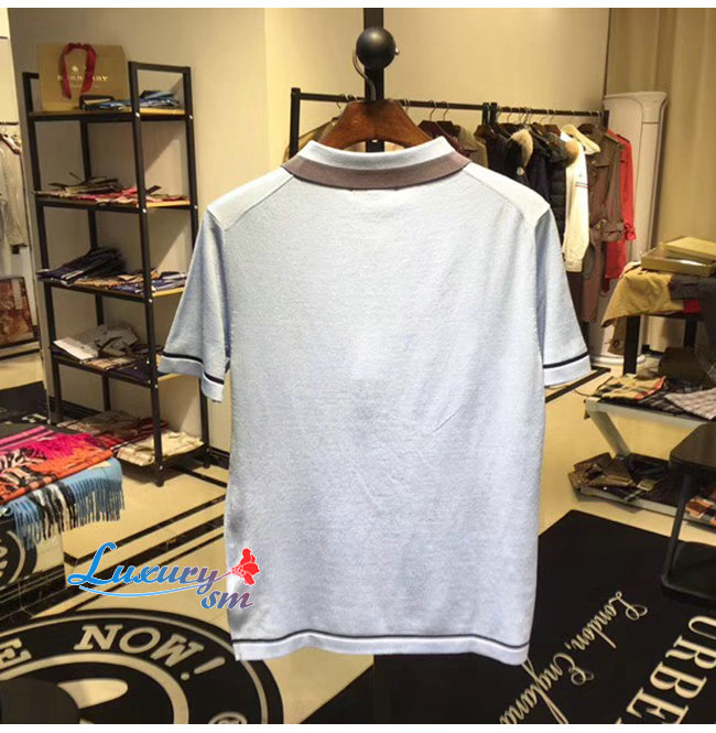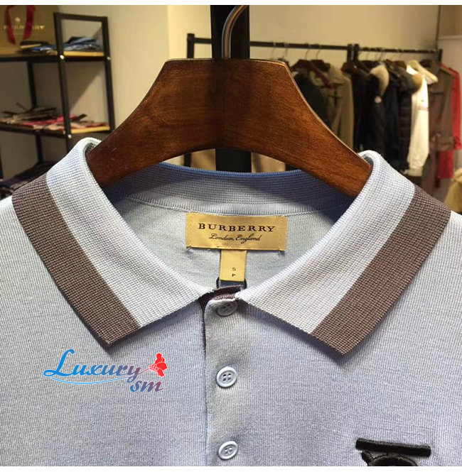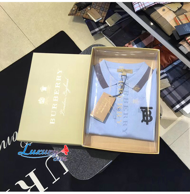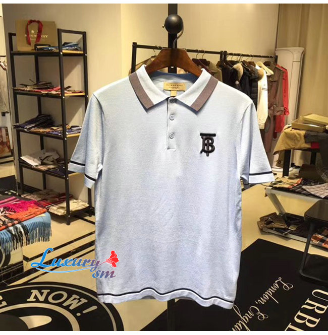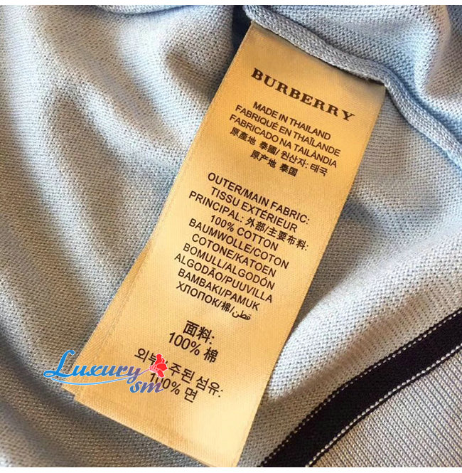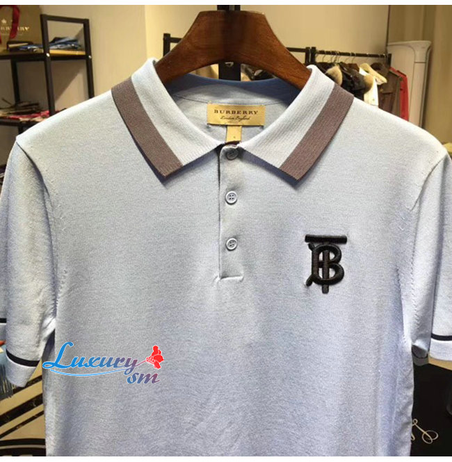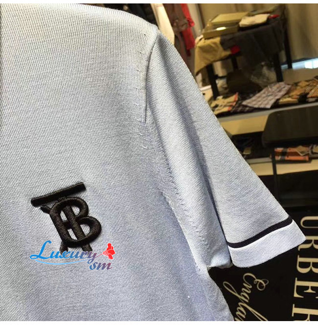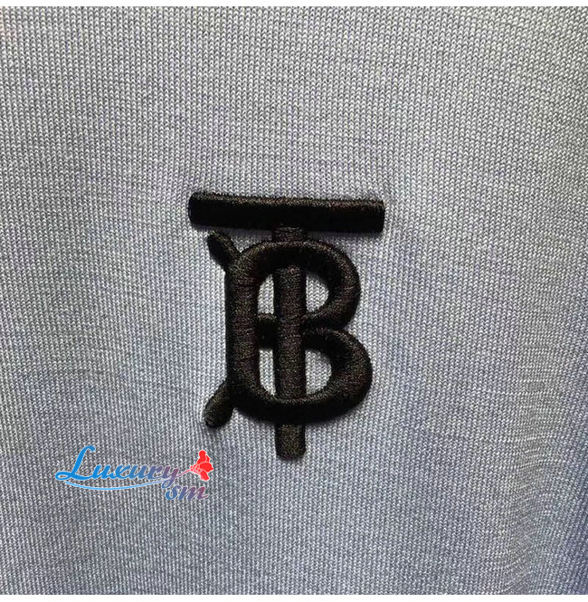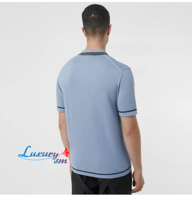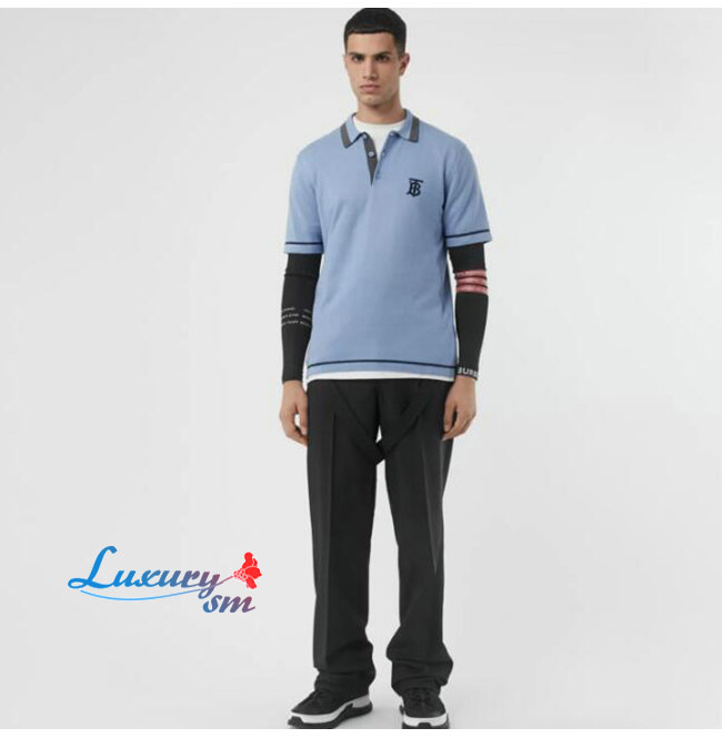 BURBERRY-80094371 버버리 베이비 블루 코튼 모노그램 모티프 티핑 폴로셔츠