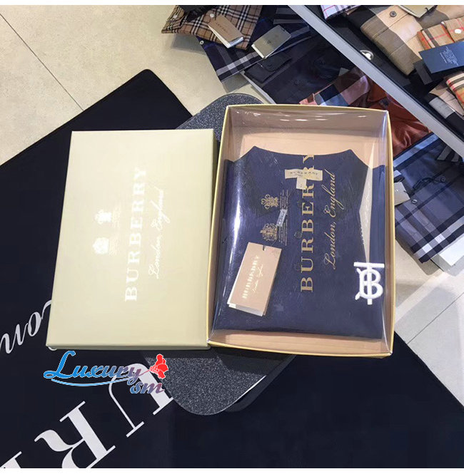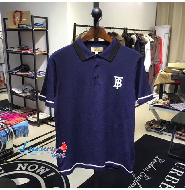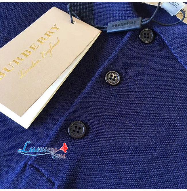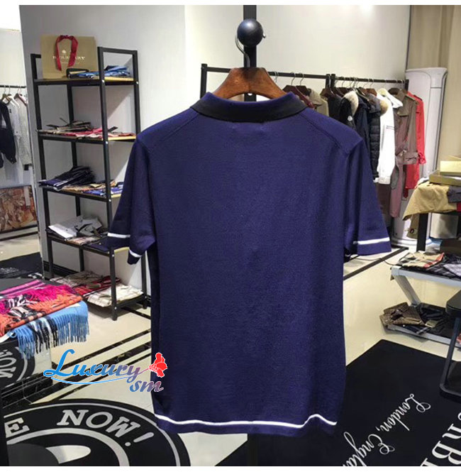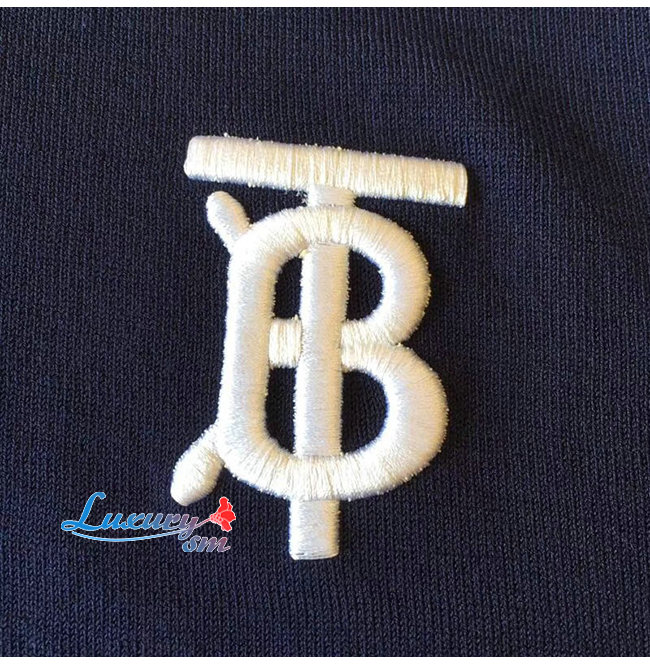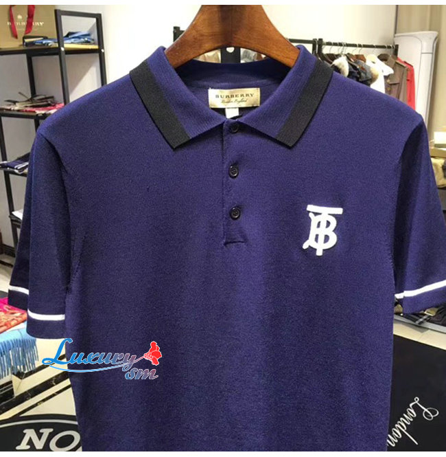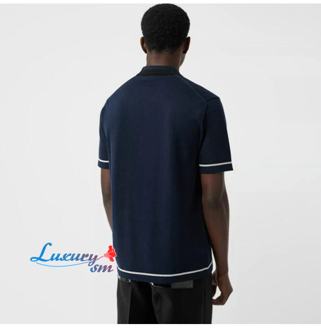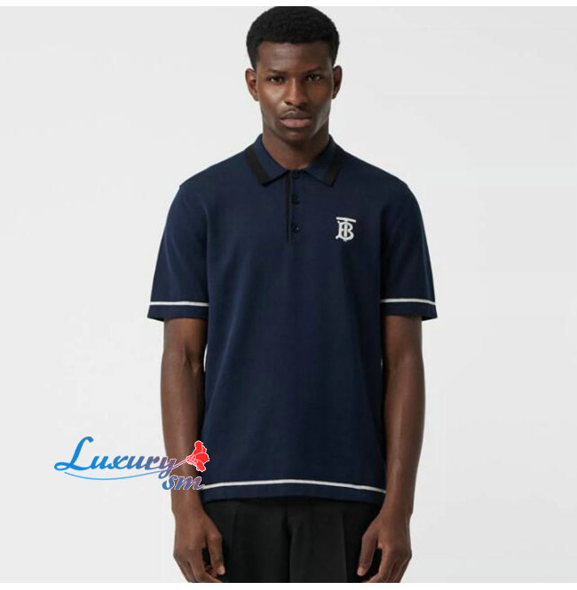 BURBERRY-80094371 버버리 네이비 코튼 모노그램 모티프 티핑 폴로셔츠