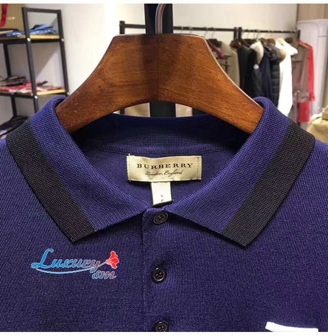 BURBERRY-80094371 버버리 베이비 블루 코튼 모노그램 모티프 티핑 폴로셔츠