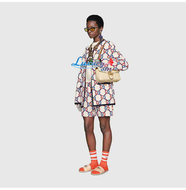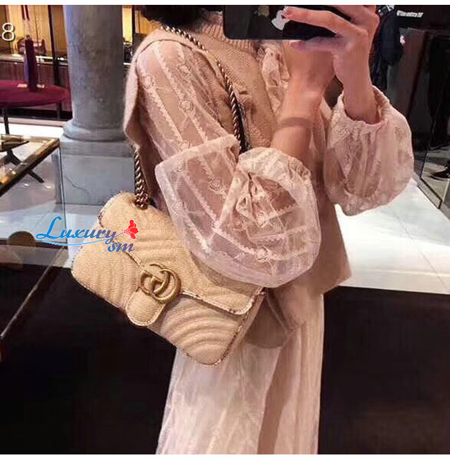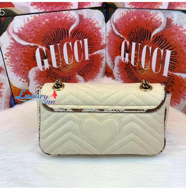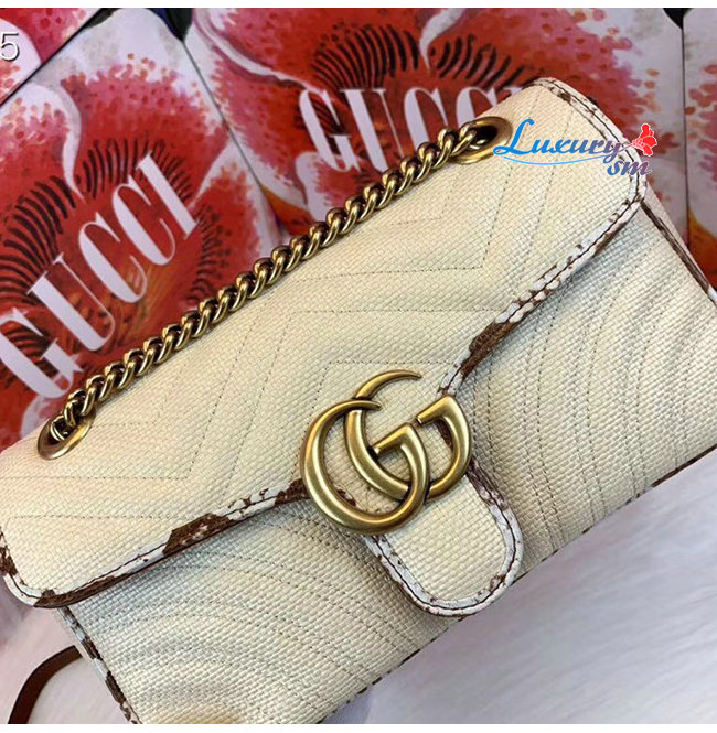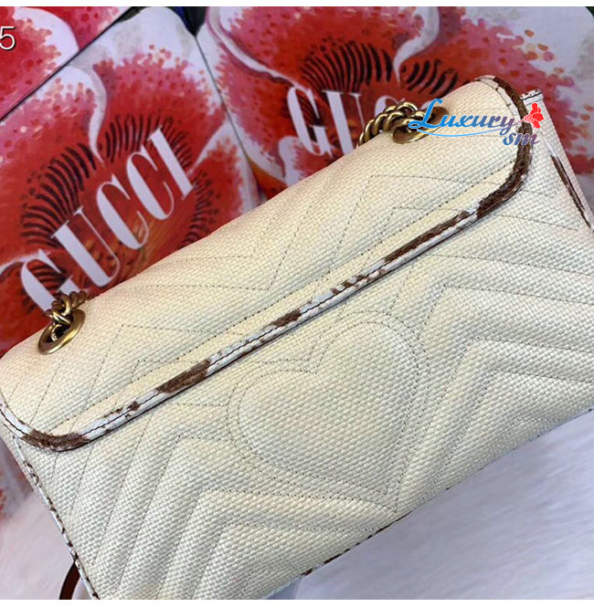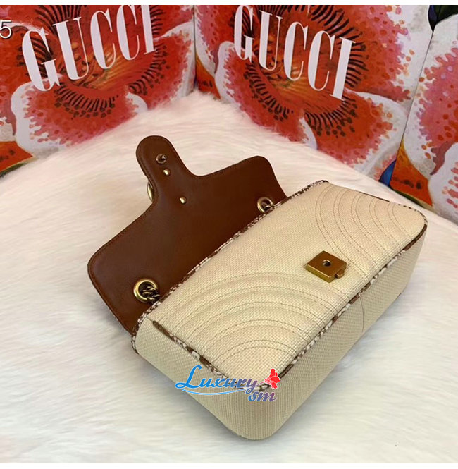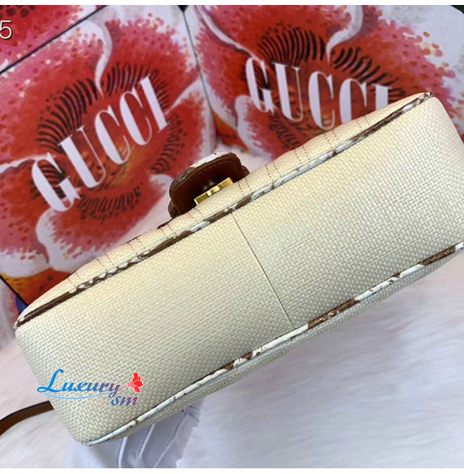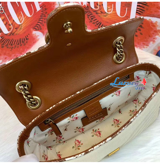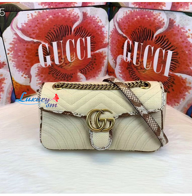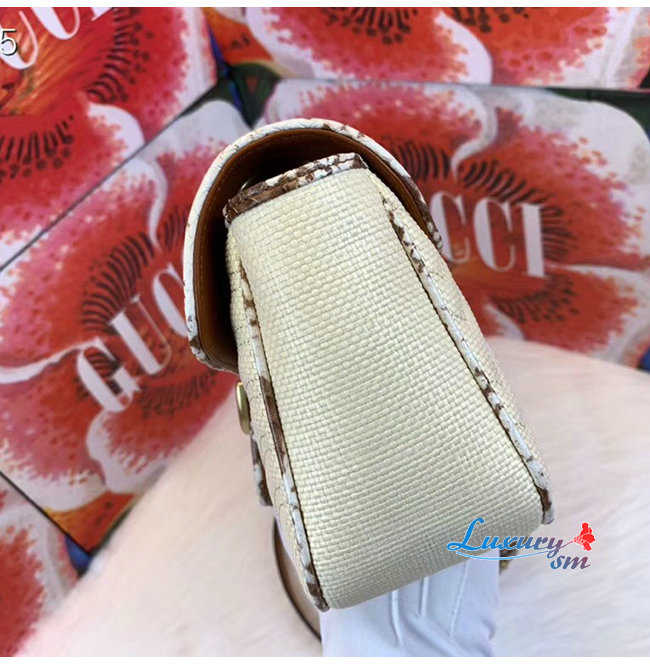 [스페셜오더]GUCCI-443497 9566 구찌 베이지 GG 마몽 스트로우 브라운/크림 스네이크 스킨 트리밍 스몰 숄더백