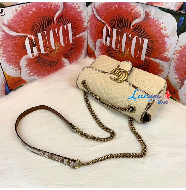 [스페셜오더]GUCCI-443497 9574 구찌 베이지 GG 마몽 스트로우 그린 스네이크 스킨 트리밍 스몰 숄더백