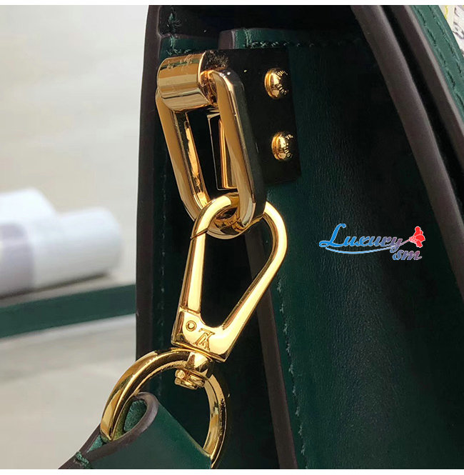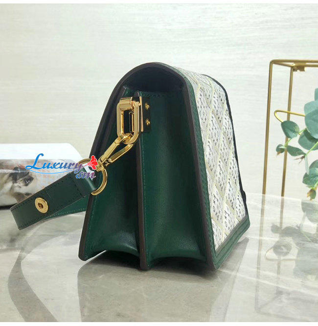 다크 그린 색상의 송아지 가죽 트리밍과 독특 한 도핀