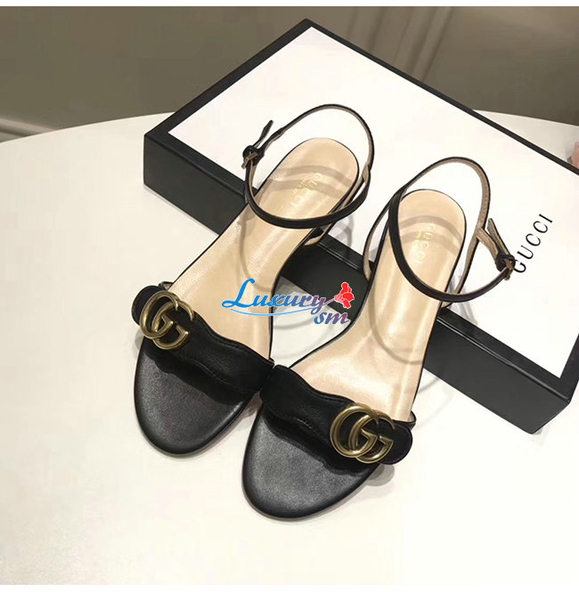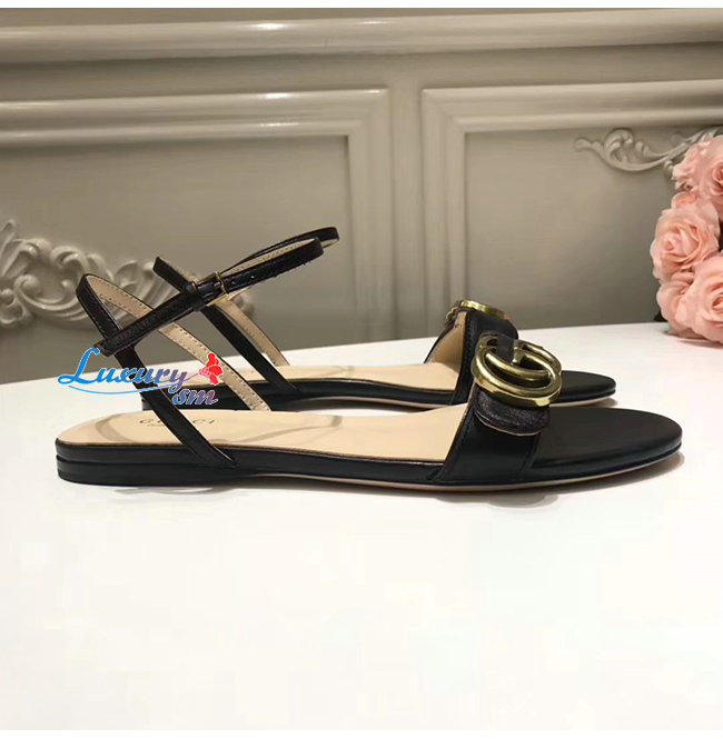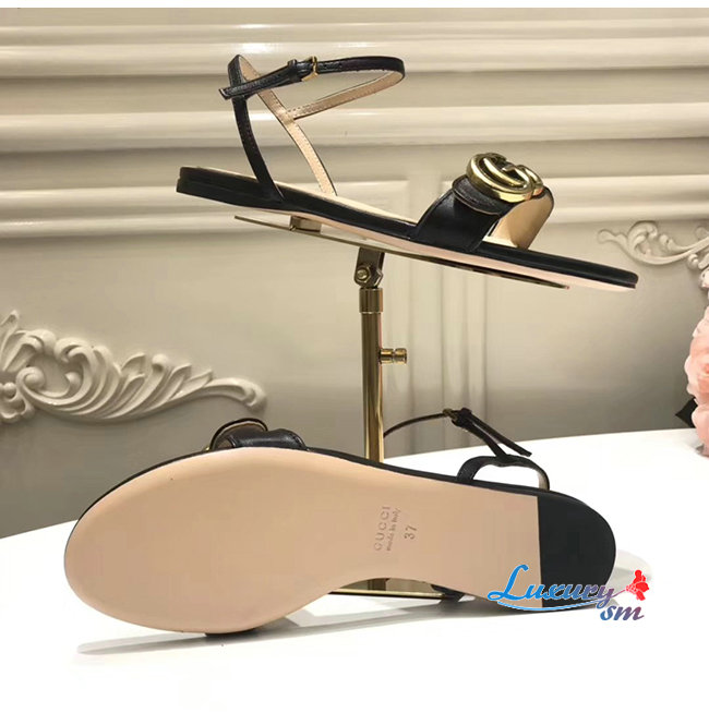 GUCCI-524631 1000 구찌 GG 마몽 블랙 가죽 샌들