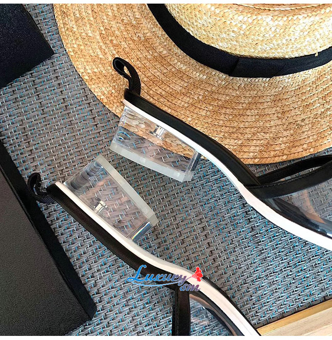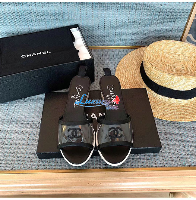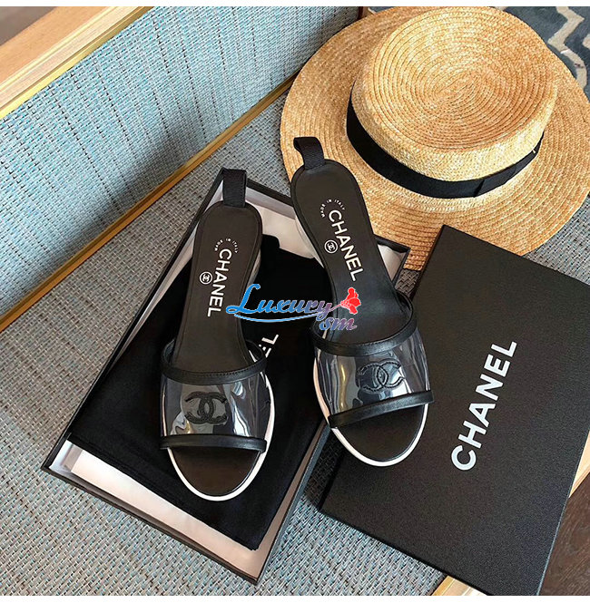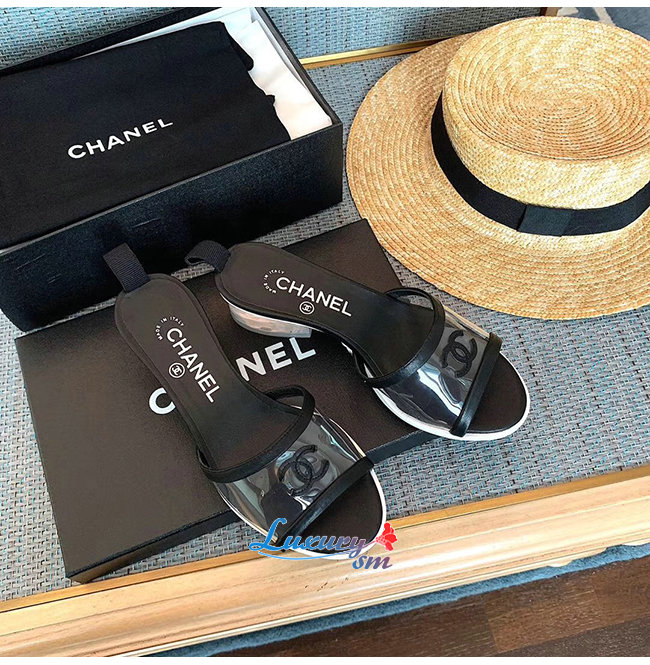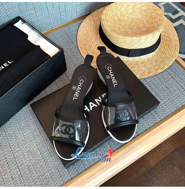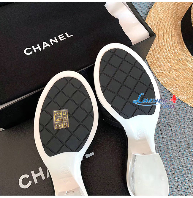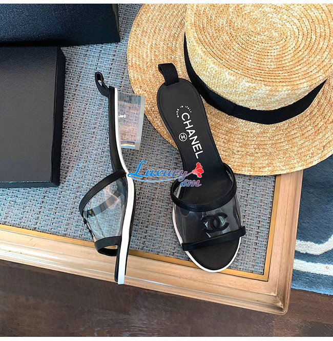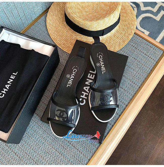 CHANEL-G34849 샤넬 블랙 램스킨 PVC 뮬