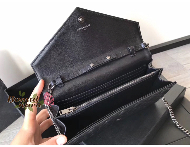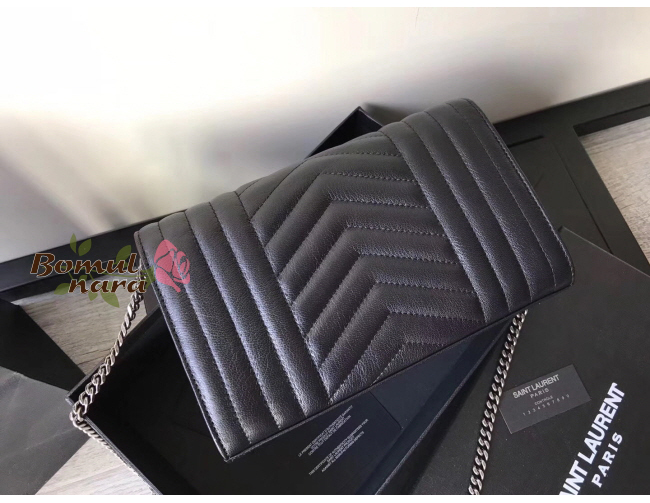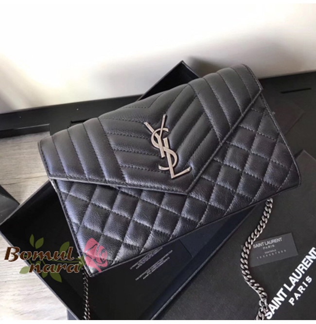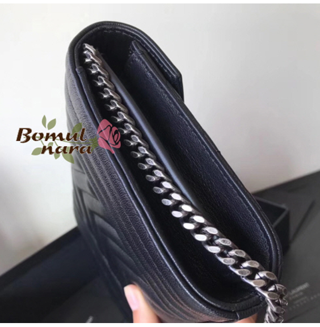 입체감 있는 퀼팅스티치와 정면에 생로랑YSL시그니처