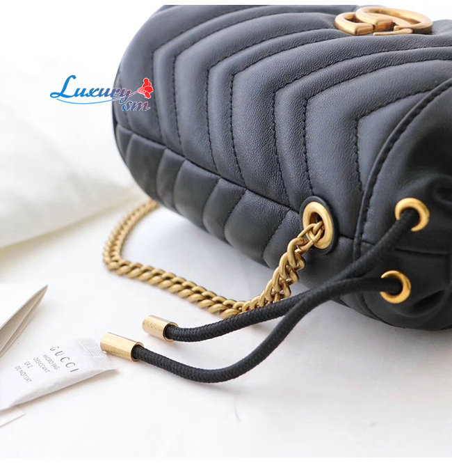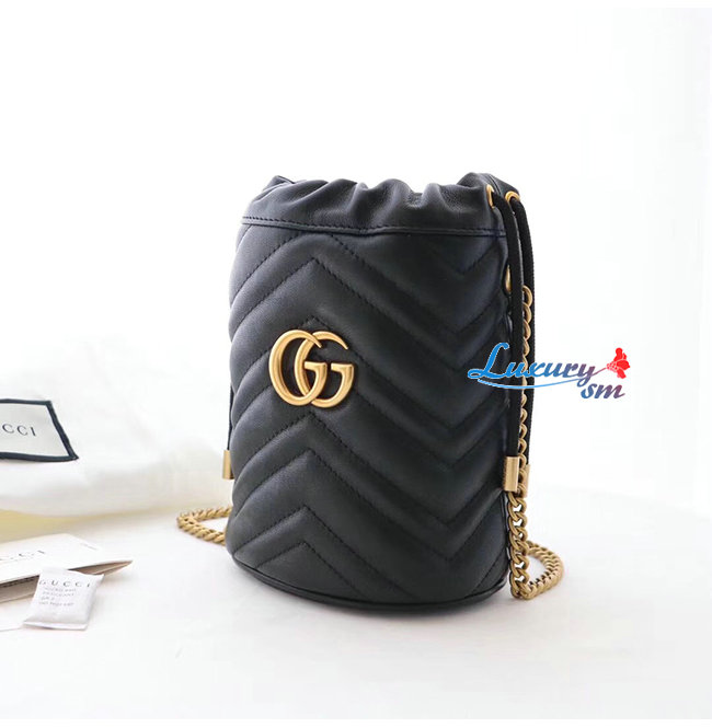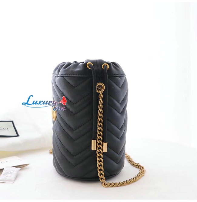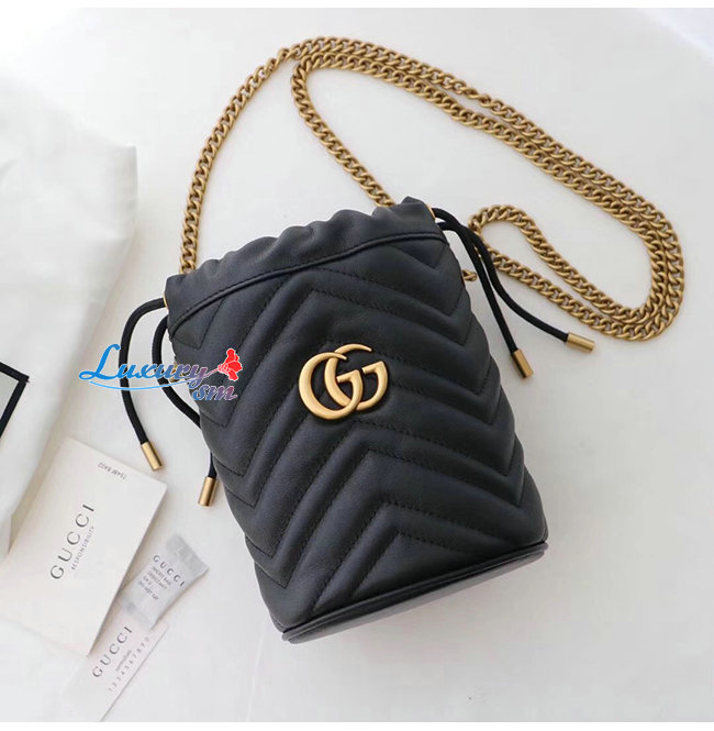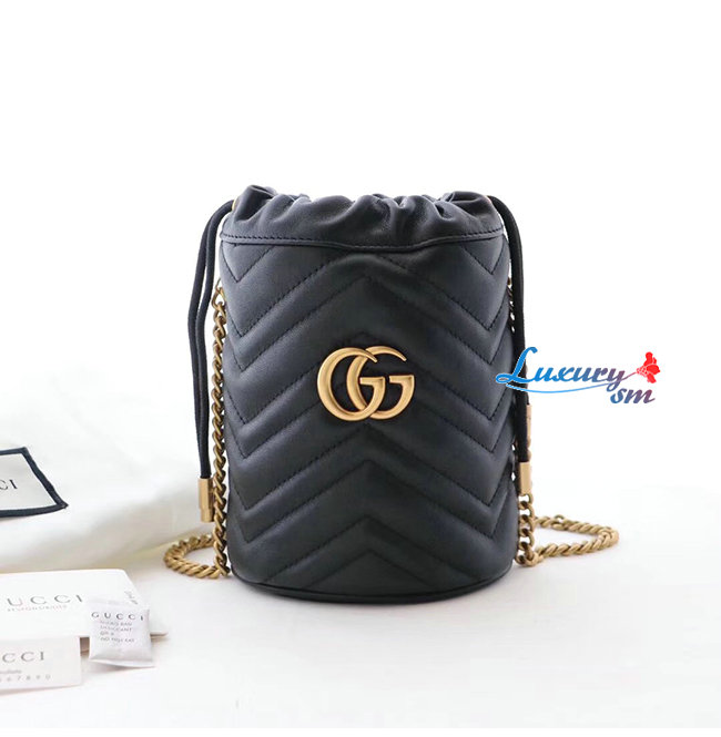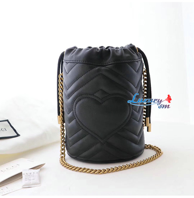 [스페셜오더]GUCCI-575163 1000 구찌 GG 마몽 블랙 마틀라세 가죽 미니 버킷백