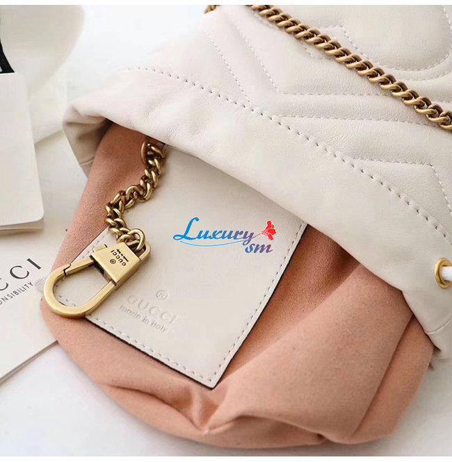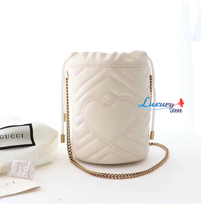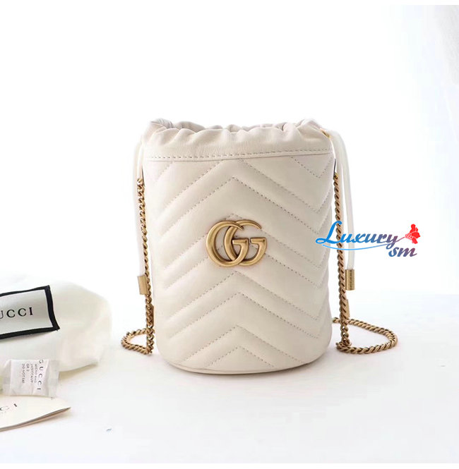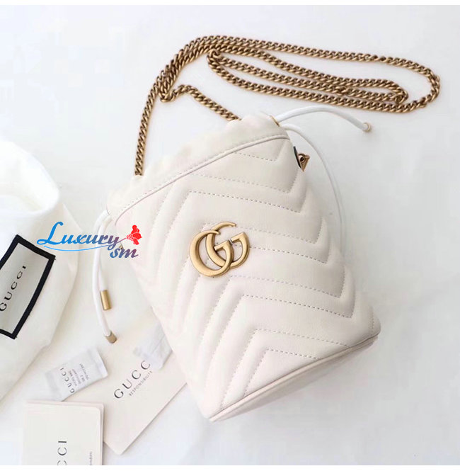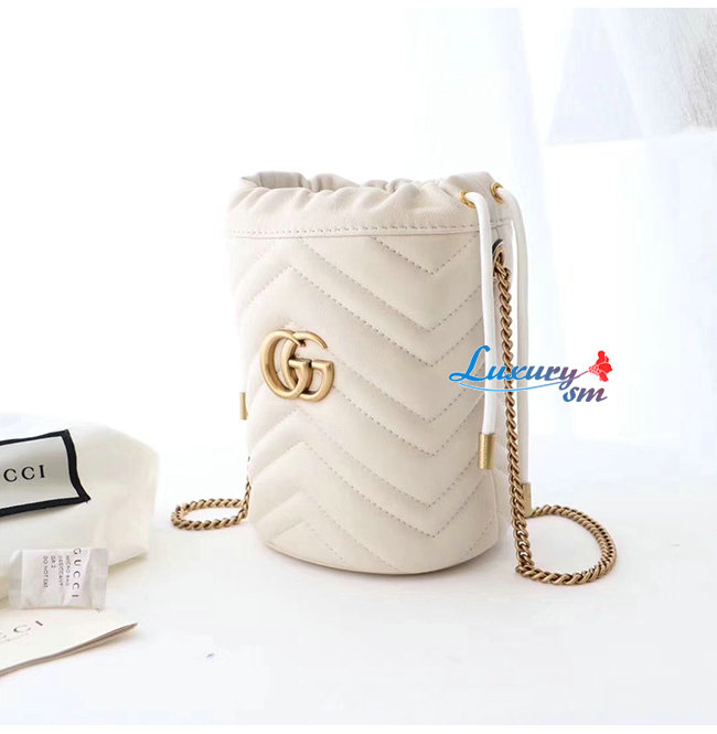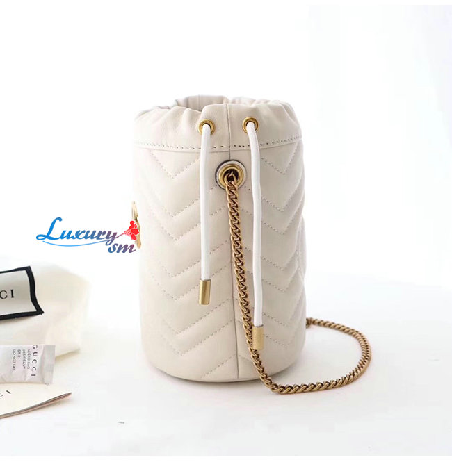[스페셜오더]GUCCI-575163 9022 구찌 GG 마몽 화이트 마틀라세 가죽 미니 버킷백