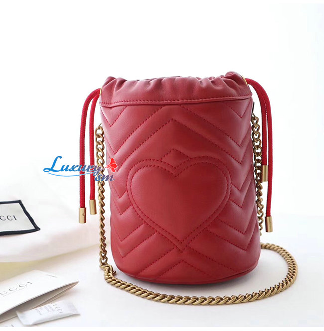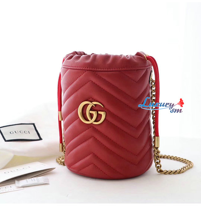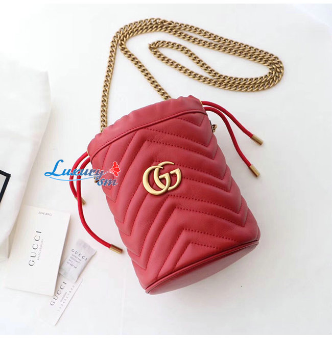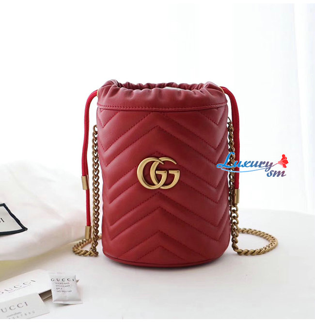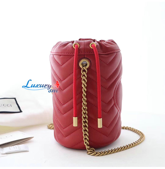 [스페셜오더]GUCCI-575163 6433 구찌 GG 마몽 레드 마틀라세 가죽 미니 버킷백