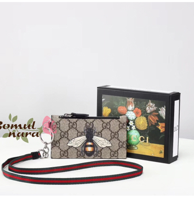 [스페셜오더]GUCCI-523903 8669 구찌 꿀벌 프린트 GG 슈프림 Web 스트랩 카드 케이스