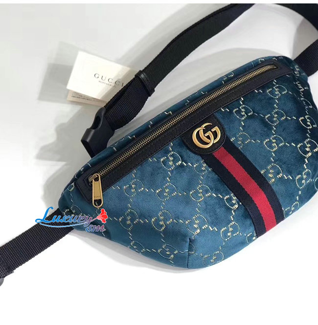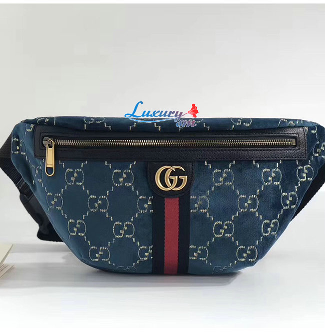 GUCCI-574968 4169 구찌 블루 GG 벨벳 벨트백