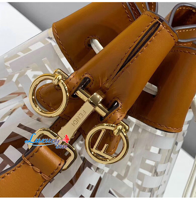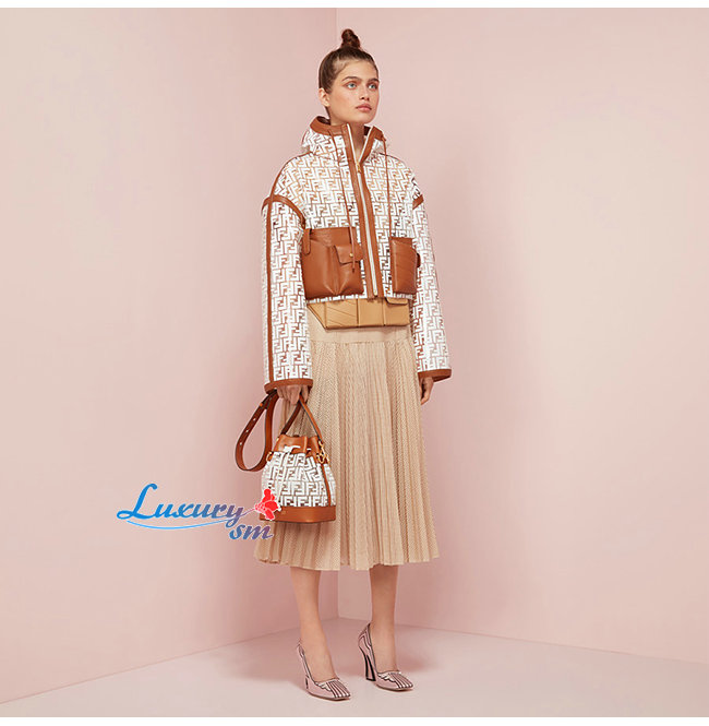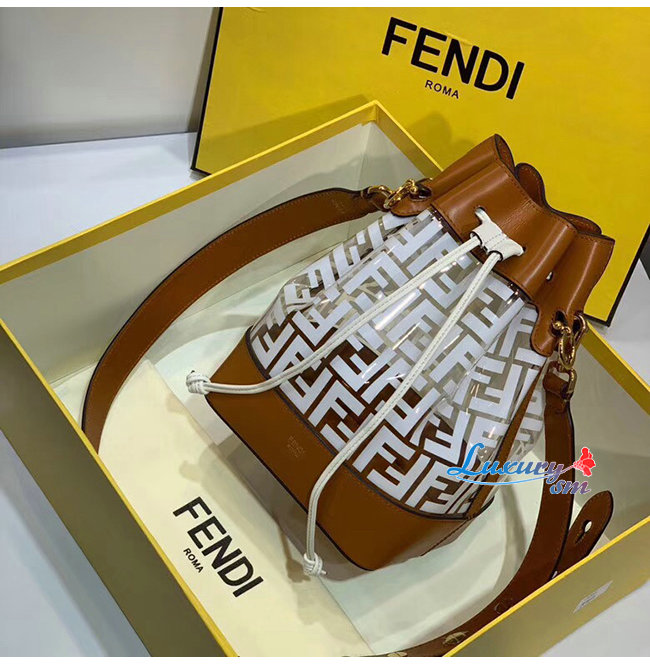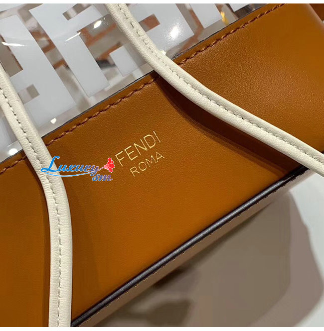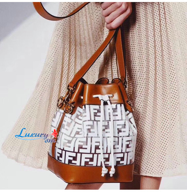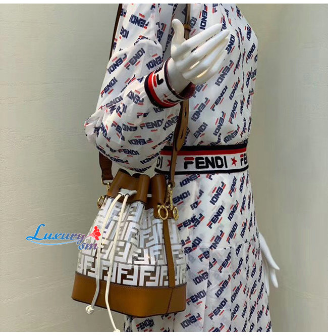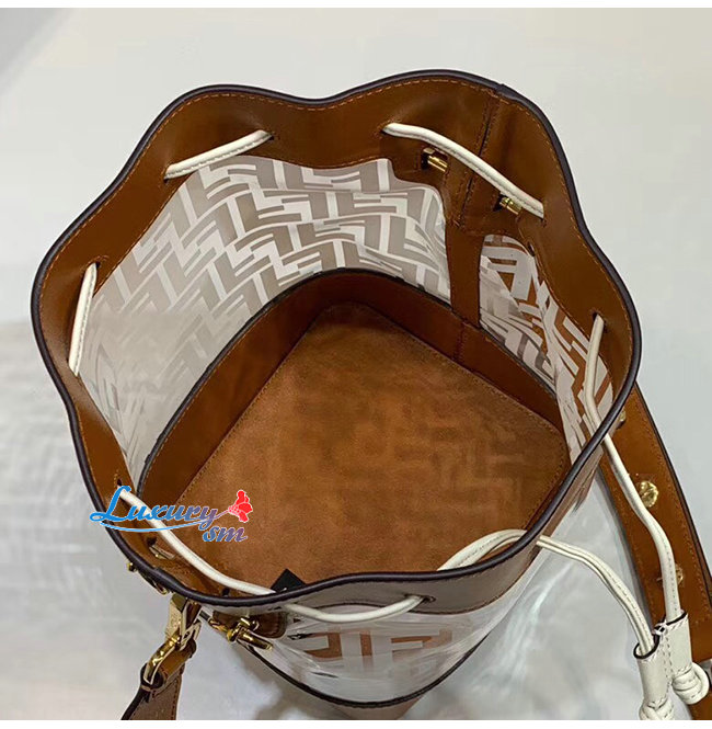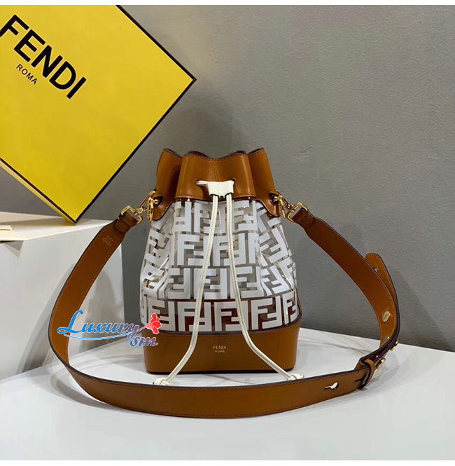 [스페셜오더]FENDI-8BT298 펜디 화이트 더블 F PU 브라운 송아지 가죽 몬트레조 버킷백