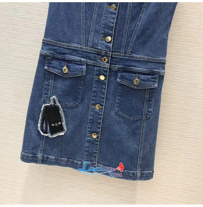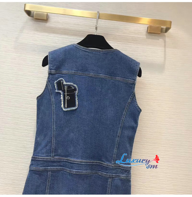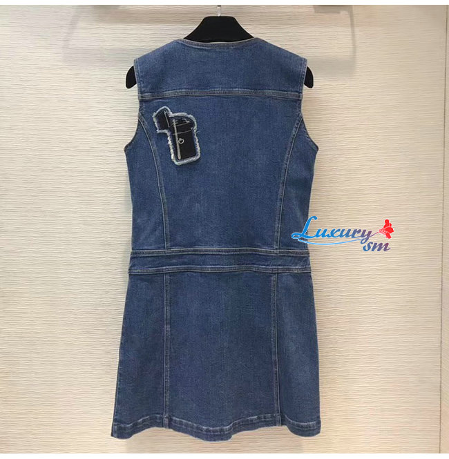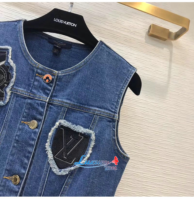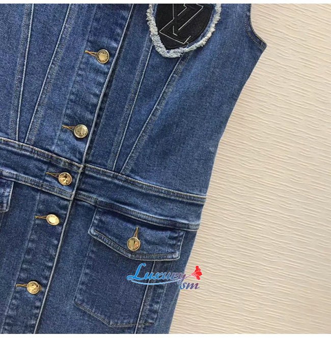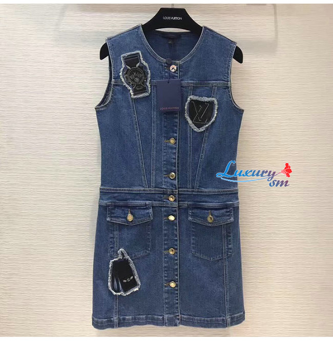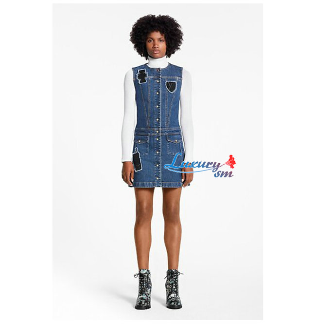 LOUIS VUITTON-1A5JQD 루이비통 슬리브리스 A-라인 드레스 위드 엠브로이더드 패치