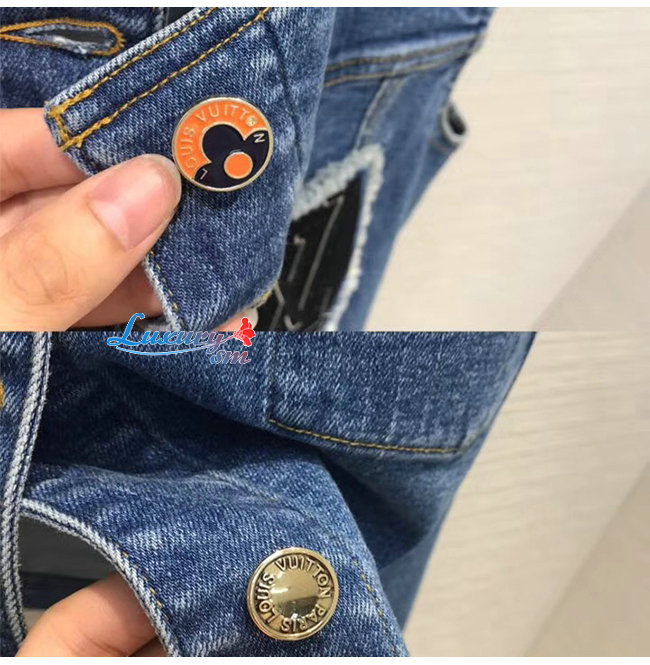 위에서부터 아래까지 앞면을 장식 한 LV 각인 디테일의